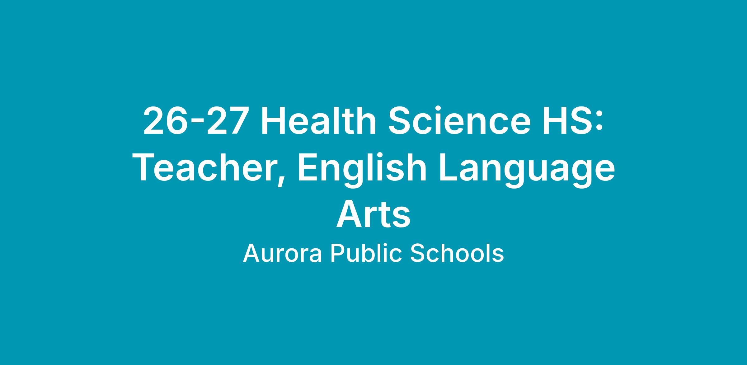 26-27 Health Science HS: Teacher, English Language Arts