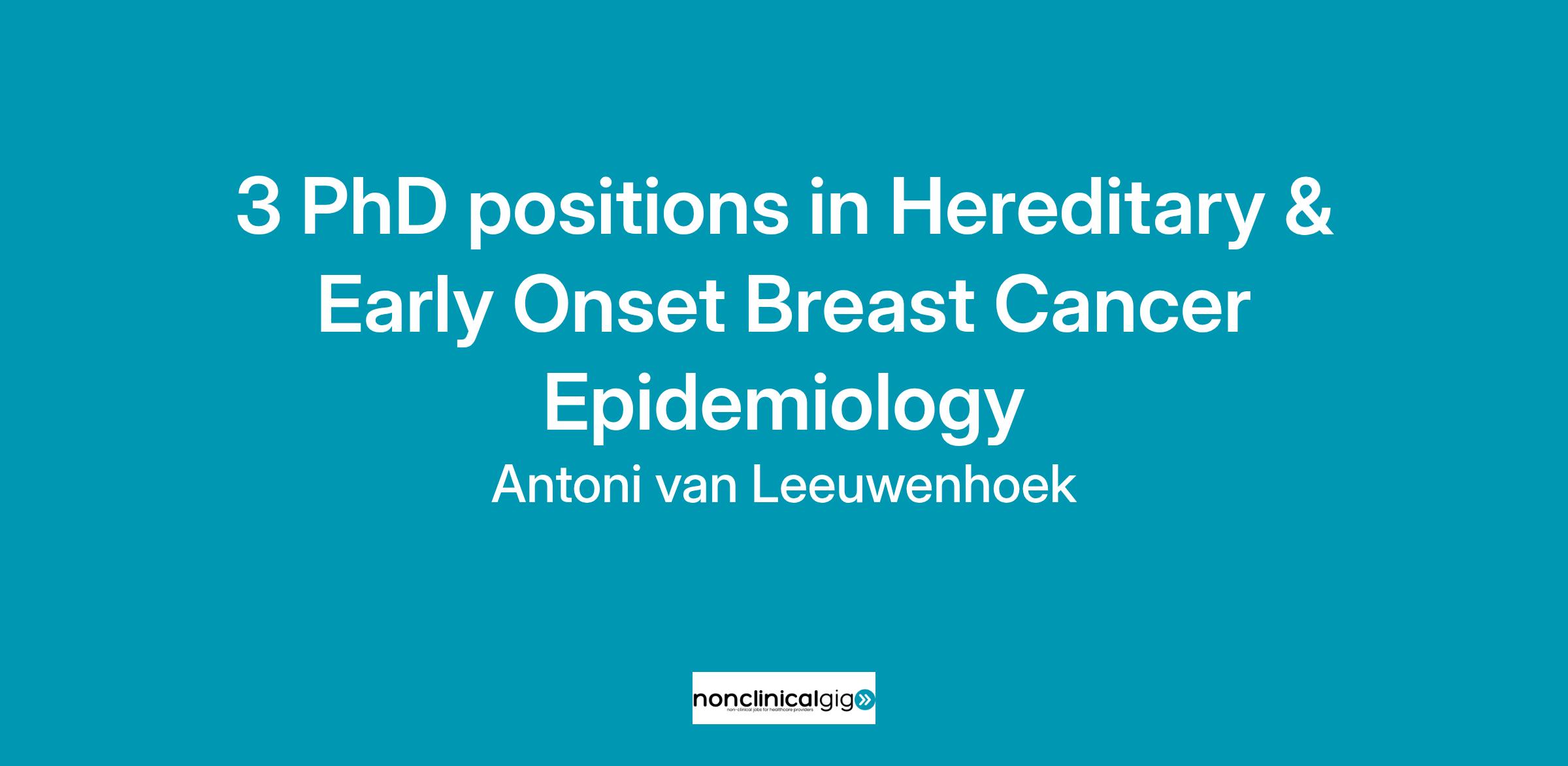 The Netherlands Cancer Institute (NKI) is recruiting three motivated and ambitious PhD students skilled in epidemiology, biostatistics or computational biology to contribute to the Hereditary & Early Onset Breast Cancer: Comprehensive Personalized Assessment, Early Risk Evaluation, and Clinical Management (HER-CARE) project.