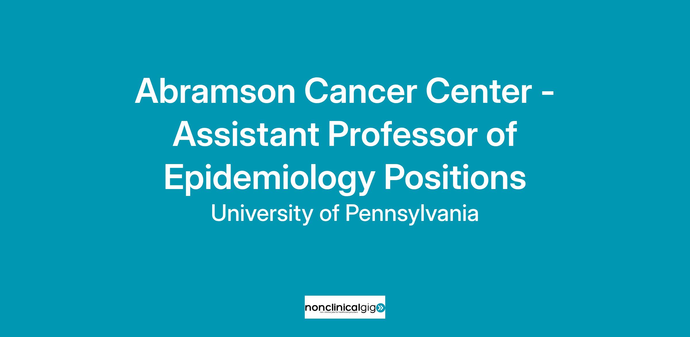 Tenure track applicants will focus primarily on the development of innovative leading-edge cancer epidemiologic methods and applications, with secondary emphasis on collaborative research projects within the Abramson Cancer Center and the Perelman School of Medicine. Clinician-Educator track applicants who have outstanding productivity in collaborative research, as well as some methodological research, are also encouraged to apply. There is a rich mix of ongoing biomedical research programs at the Abramson Cancer Center to provide motivation and opportunities for the development of novel methods on wide-ranging domains of biomedical, clinical, and translational science.