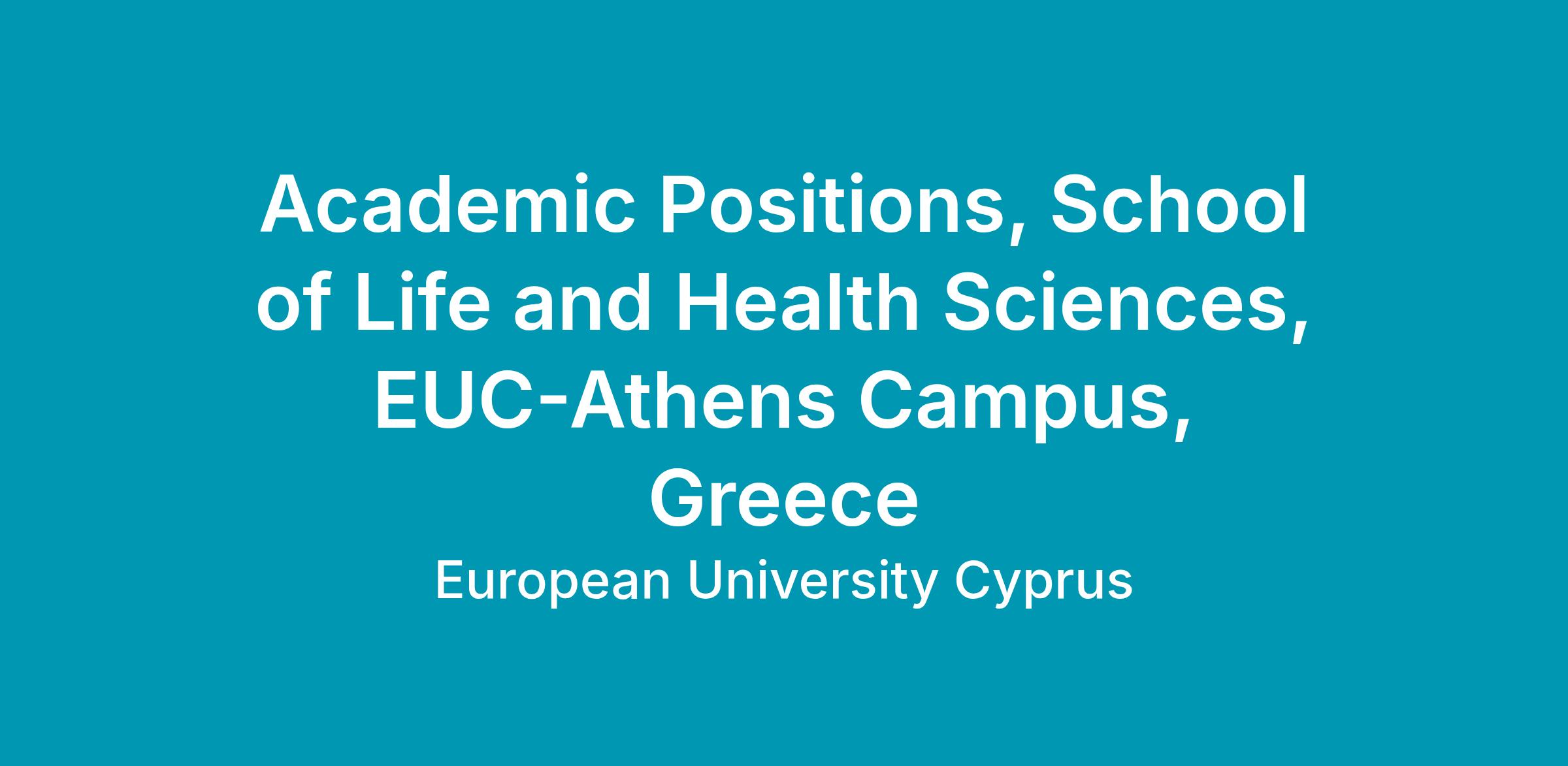 The EUC School of Life and Health Sciences currently seeks to recruit qualified academics at any academic rank for its Athens Campus, Greece, in the following disciplines: