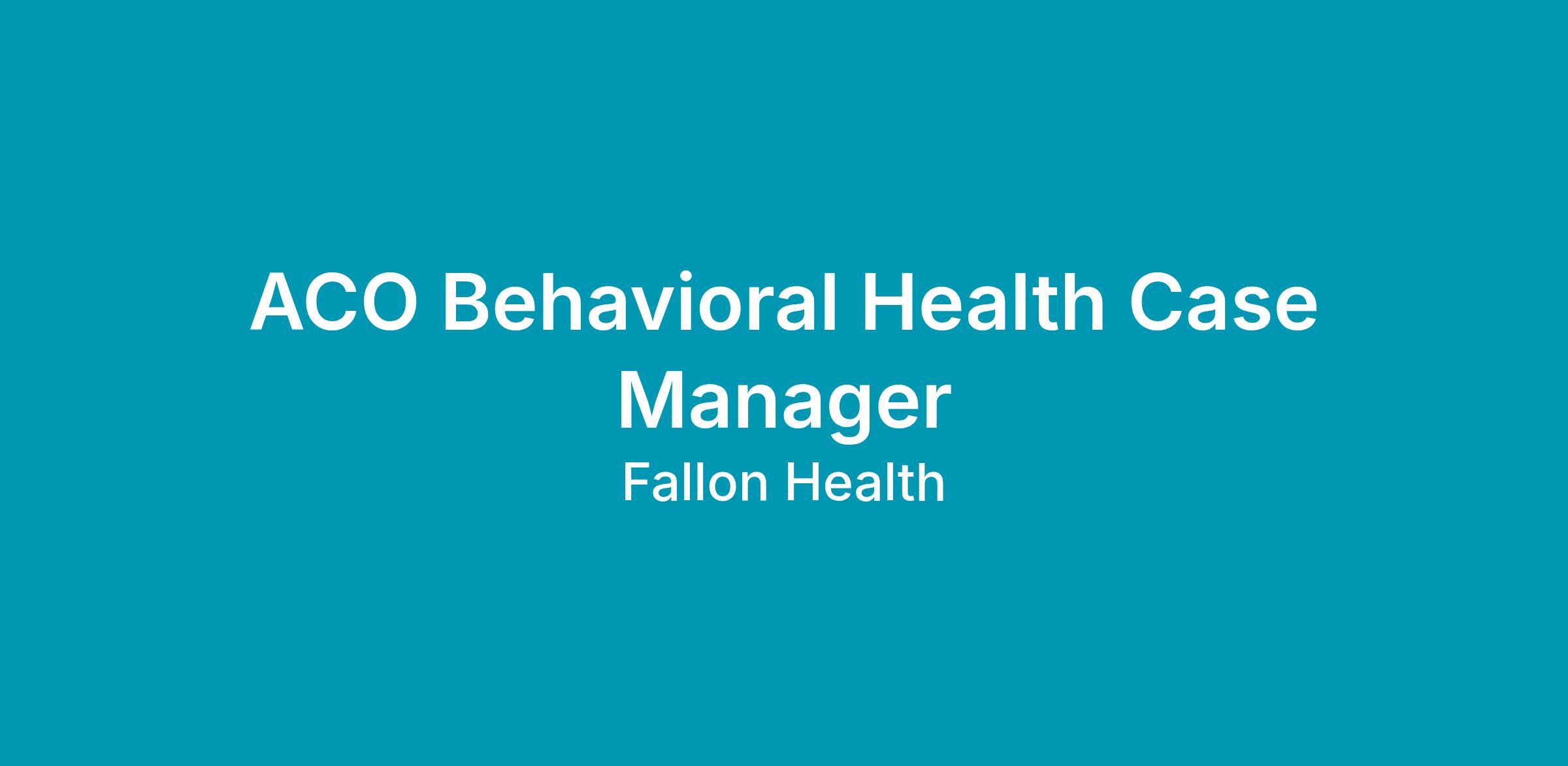 The Accountable Care Organization ACO Behavioral Health Case Manager I (BHCM I) is an integral part on an interdisciplinary team focused on transition of care assessment and support, care coordination, care management and improving access to and quality of care for Fallon Health ACO members.