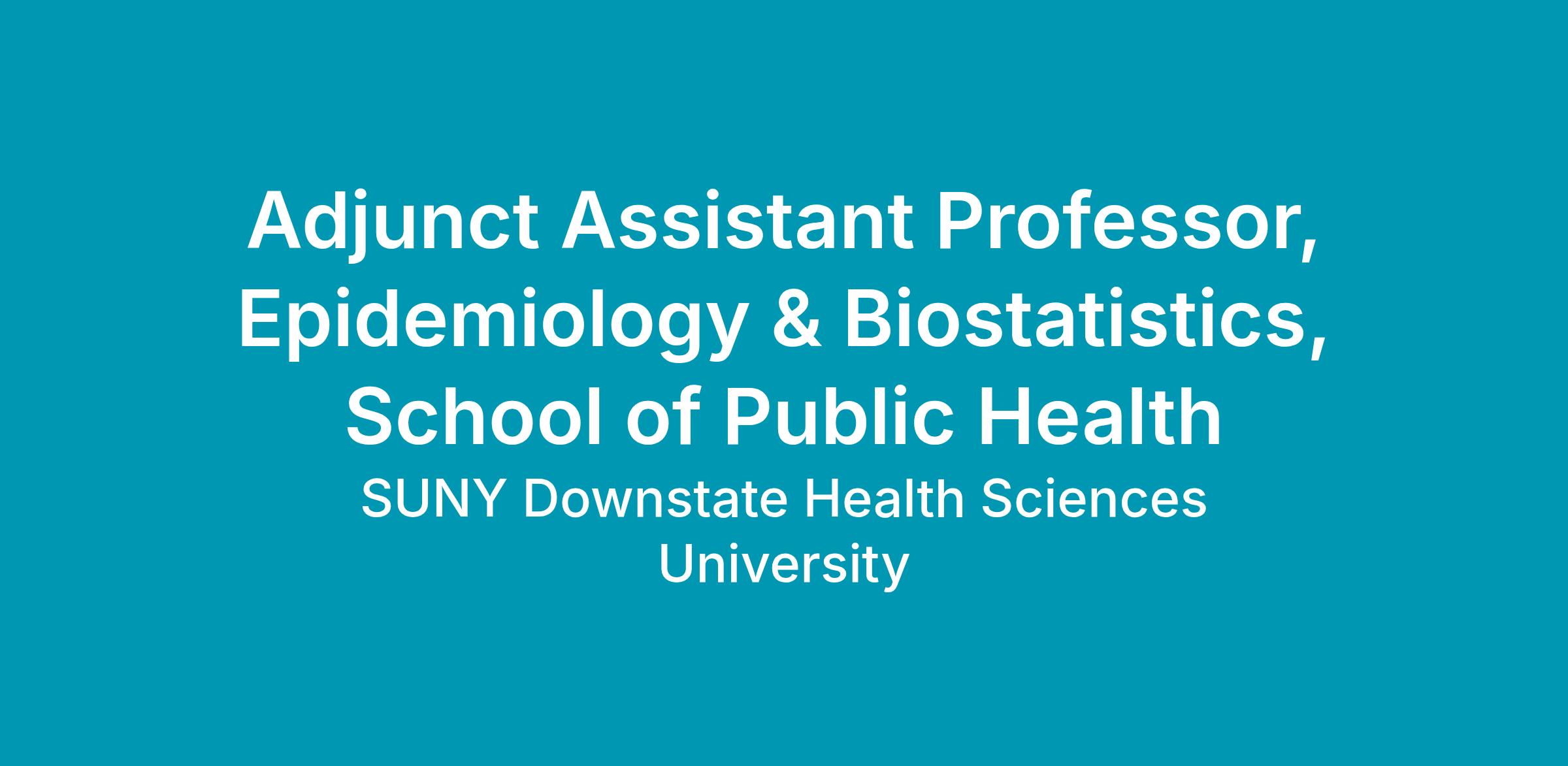 The School of Public Health at SUNY Downstate Health Sciences University is seeking an hourly/part-time Adjunct Assistant Professor, Epidemiology & Biostatistics. The successful candidate will: