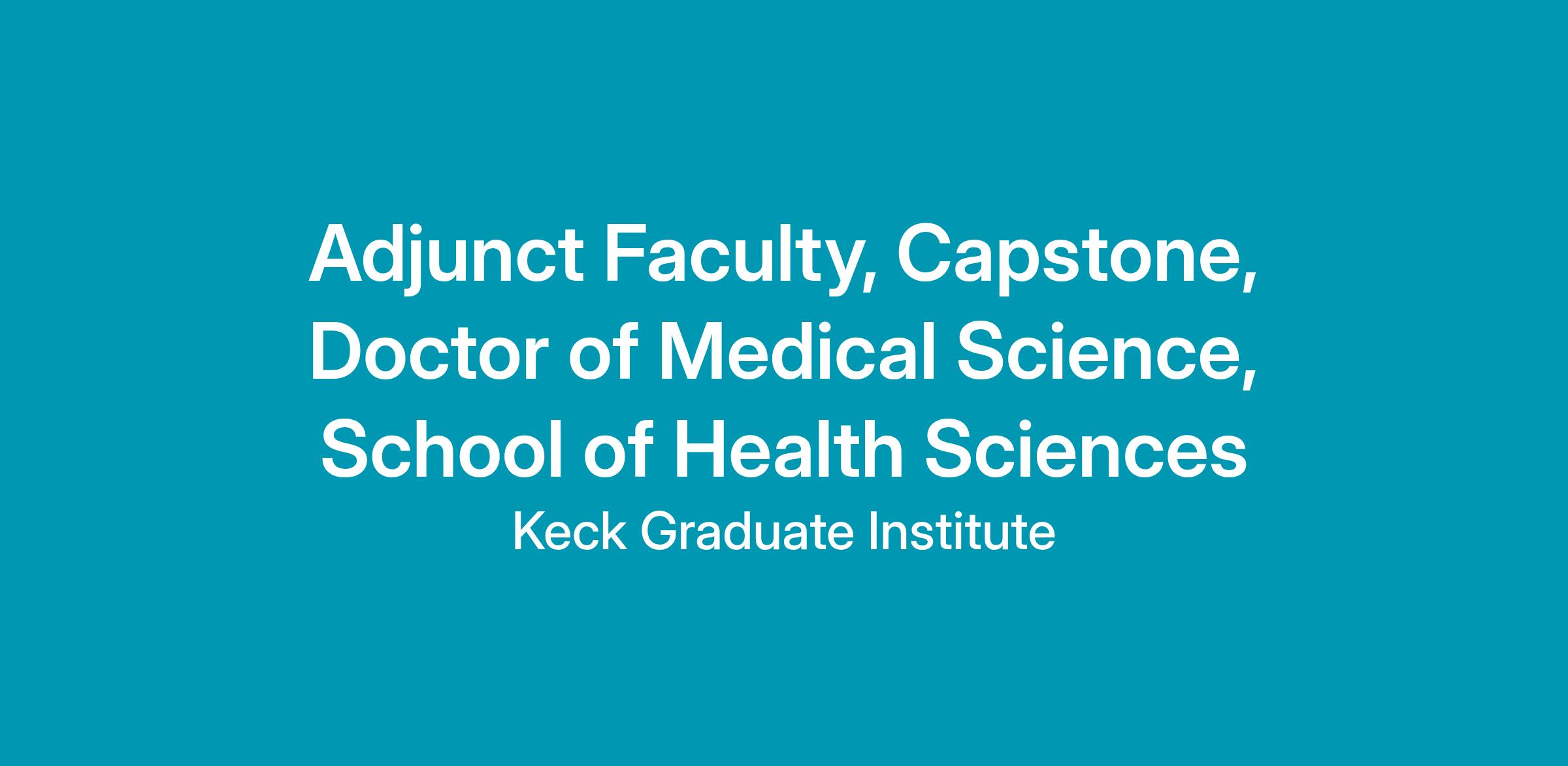 Adjunct Faculty, Capstone, Doctor of Medical Science, School of Health SciencesJob Description:
