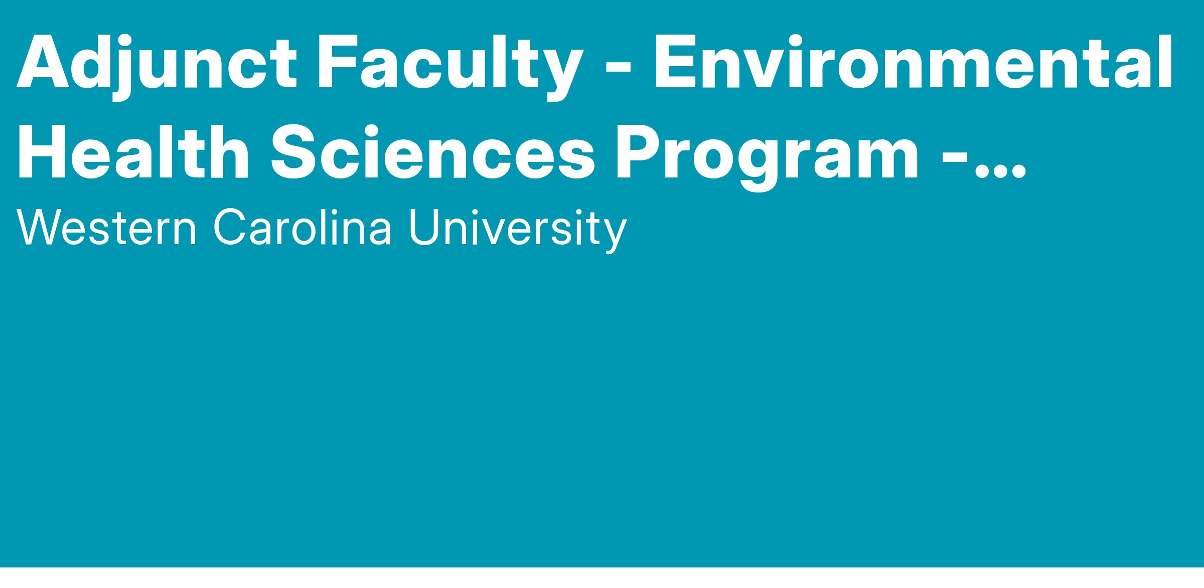 Applications are currently invited for part-time instructors in the Environmental Health Sciences Program housed in the School of Health Sciences. The School of Health Sciences commonly has the need for part-time instructors. We invite applications to be submitted for these potential openings. These appointments are on a course by course basis. Salary is commensurate with education, experience, and discipline . These postings are continuous in order to develop a qualified pool of interested candidates. If your academic area of interest/expertise meets the programmatic needs of WCU at any time you will be contacted to discuss proposed teaching opportunities. These needs change from semester to semester.