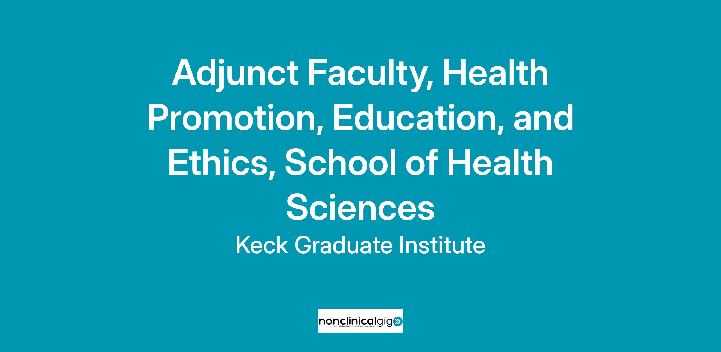 Adjunct Faculty, Health Promotion, Education, and Ethics, School of Health SciencesJob Description: