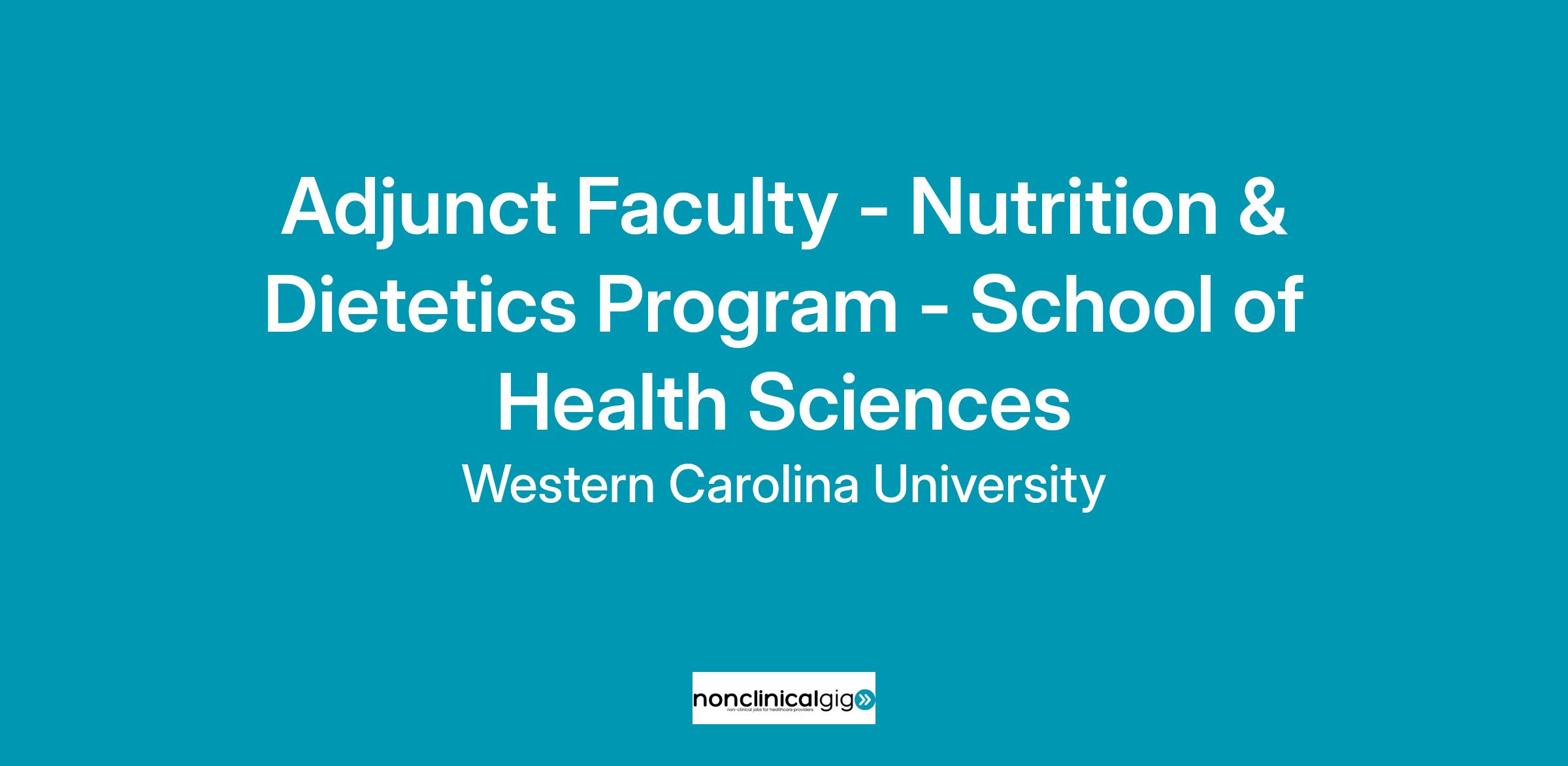 Applications are currently invited for part-time instructors in the Nutrition & Dietetics Program housed in the School of Health Sciences. The School of Health Sciences commonly has the need for part-time instructors. We invite applications to be submitted for these potential openings. These appointments are on a course-by-course basis. Salary is commensurate with education, experience, and discipline. These postings are continuous in order to develop a qualified pool of interested candidates. If your academic area of interest/expertise meets the programmatic needs of WCU at any time you will be contacted to discuss proposed teaching opportunities. These needs change from semester to semester.