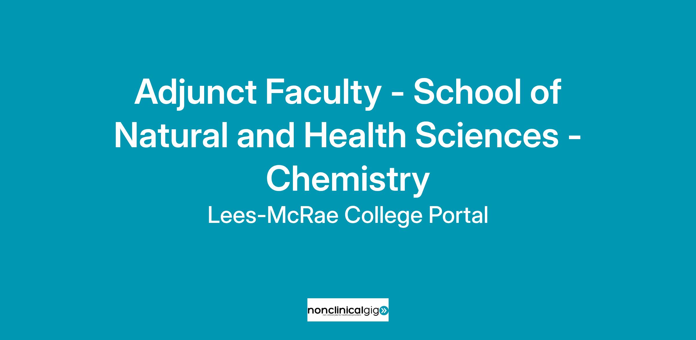 Department: Academic Affairs Category: Exempt; Part time; Temporary; Not Benefit Eligible Summary Lees-McRae College is seeking professionals to provide quality learning experiences to traditional and non-traditional students. Adjunct faculty provide instruction in assigned courses on a part-time, as needed basis. Courses may be seated, online, or hybrid format. Some courses are taught at off-campus locations. Adjunct faculty are currently needed for lectures/labs in the following disciplines for the Spring 2026 term: General Chemistry (in person only) Organic Chemistry (in person only) Essential Functions Utilize current pedagogical methods that foster active and engaged learning. Provide effective quality instruction to students by preparing for each learning experience. Communicating effectively both in verbal and written expression. Follow the course or academic program standards as prescribed by the college. Develop, distribute, and review course syllabi according to the standards provided. Provide supplemental instruction to enhance textbooks and lessons. Use effective evaluation methods to measure student performance. Maintain accurate records (attendance, grades, evaluations, etc.) and submit required reports according to college guidelines. Remain abreast of standards and ongoing developments and practices in the teaching discipline. Competencies Communication Skills. Ethical Conduct. Teamwork Orientation. Thoroughness. Supervisory Responsibility This position has no supervisory responsibilities. Work Environment Typical classroom environment. Position Type/Expected Hours of Work This is a part-time, temporary position. Adjunct appointments do not guarantee course assignments. All adjunct positions are contingent upon enrollment demand. Travel No travel is expected for this position. Additional Eligibility Qualifications Please note this job description is not designed to cover or contain a comprehensive listing of activities, duties or responsibilities that are required of the employee for this job. Duties, responsibilities, and activities may change at any time with or without notice.