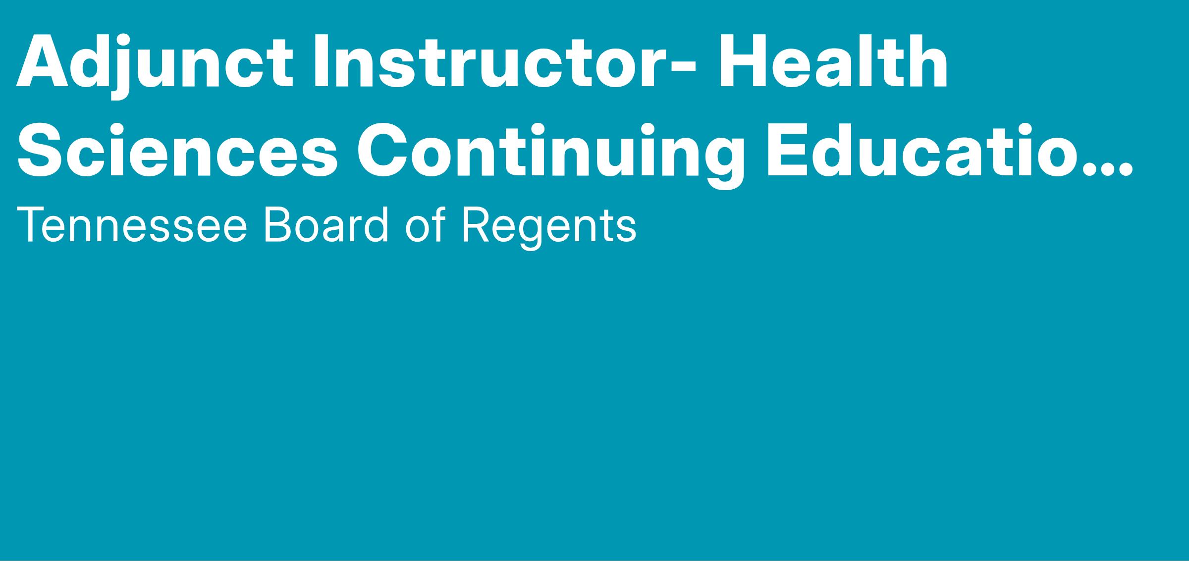 Title: Adjunct Instructor- Health Sciences Continuing Education (Pool)