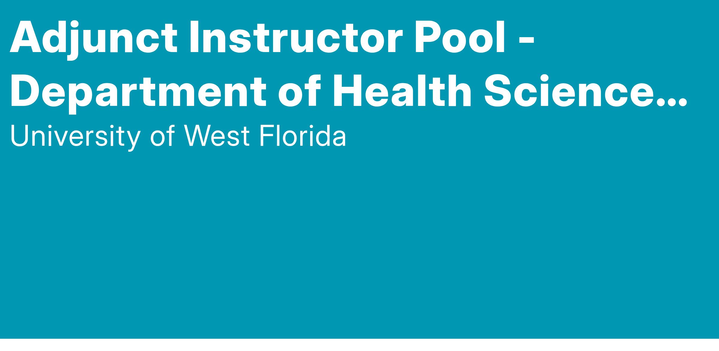 Special Instructions to Applicants: | Candidates must apply online through the University of West Florida website: https://careers.uwf.edu. Applicants are required to attach a cv, letter of interest and contact information for three references. References will be contacted upon submission of this application. An opportunity to upload these documents will be provided during the application process. For assistance, please contact Human Resources at 850-474-2694 or email jobs@uwf.edu. The college is building a pool of adjuncts for teaching opportunities for upcoming semesters. Applications will be accepted on an on-going basis. Your application will be reviewed by the appropriate academic department. |