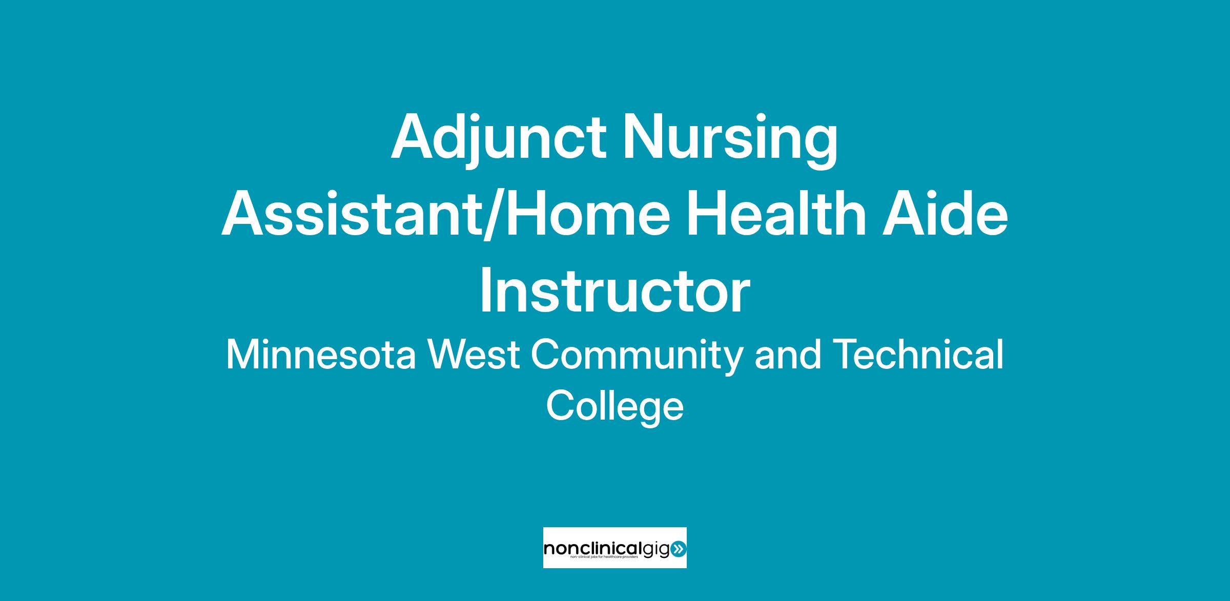 Adjunct Nursing Assistant/Home Health Aide InstructorInstitution: