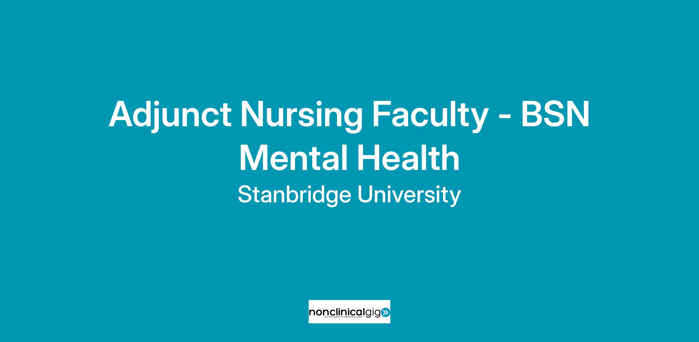 DescriptionStanbridge University is seeking a qualified and passionate Adjunct Nursing Faculty member to provide instruction in Mental Health of Nursing for the Bachelor of Science in Nursing (BSN) program. Reporting directly to the Director of the BSN Program, this role involves delivering high-quality didactic and/or clinical instruction, promoting student engagement and success, and maintaining academic and professional standards in alignment with university guidelines. Faculty are expected to assess student performance, provide timely feedback, and maintain accurate documentation of all course-related activities.