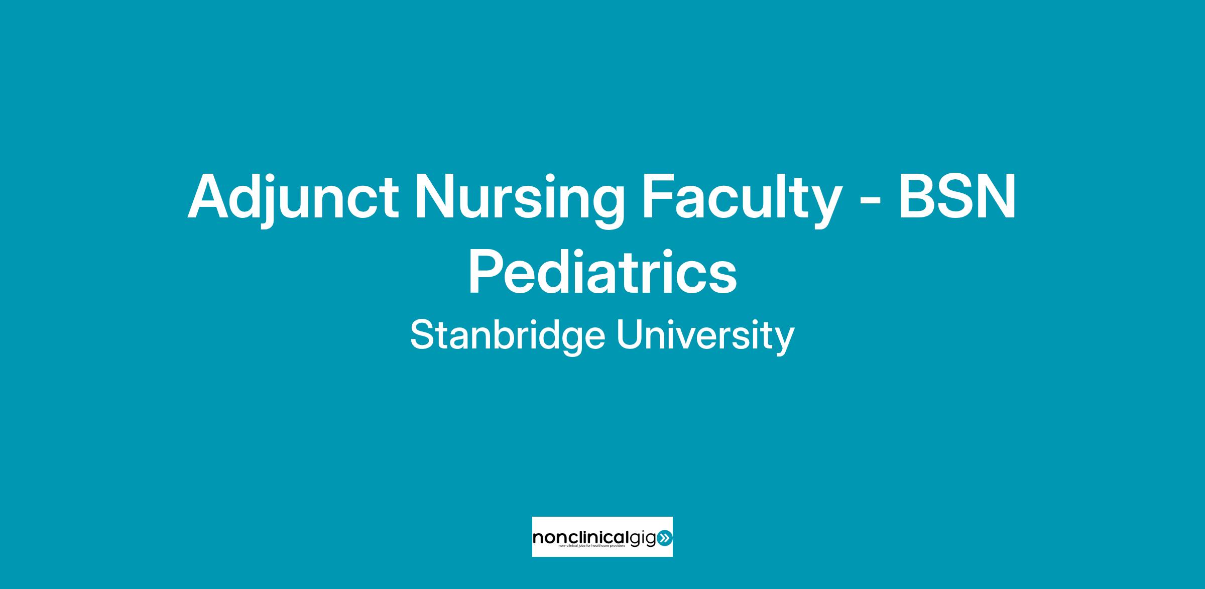 DescriptionStanbridge University is seeking a qualified and passionate Adjunct Nursing Faculty member to provide instruction in Pediatrics of Nursing for the Bachelor of Science in Nursing (BSN) program. Reporting directly to the Director of the BSN Program, this role involves delivering high-quality didactic and/or clinical instruction, promoting student engagement and success, and maintaining academic and professional standards in alignment with university guidelines. Faculty are expected to assess student performance, provide timely feedback, and maintain accurate documentation of all course-related activities.