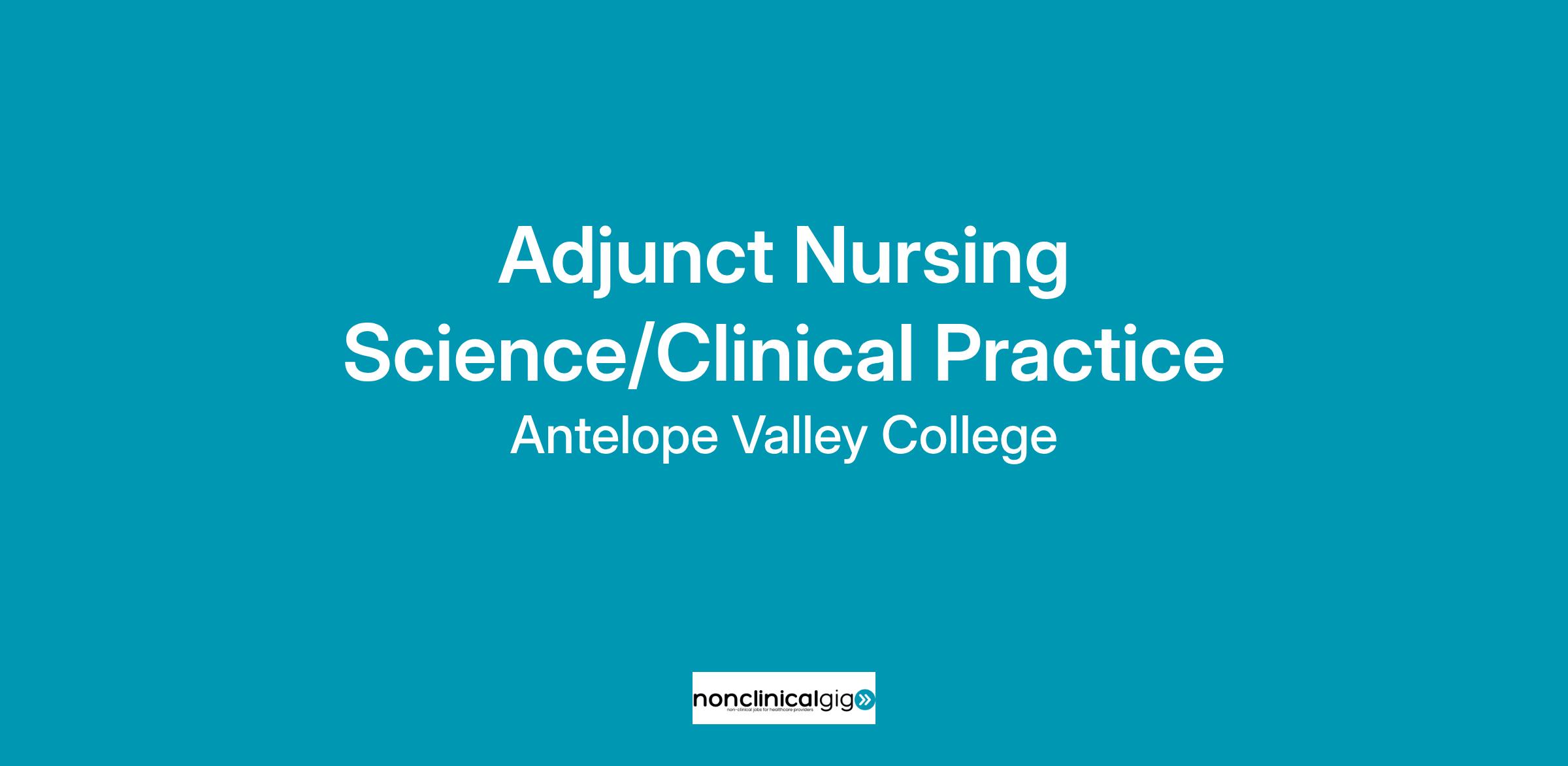 Antelope Valley College invites applications for our adjunct (temporary, part-time) faculty applicant pool for the following discipline: Nursing Science/Clinical Practice