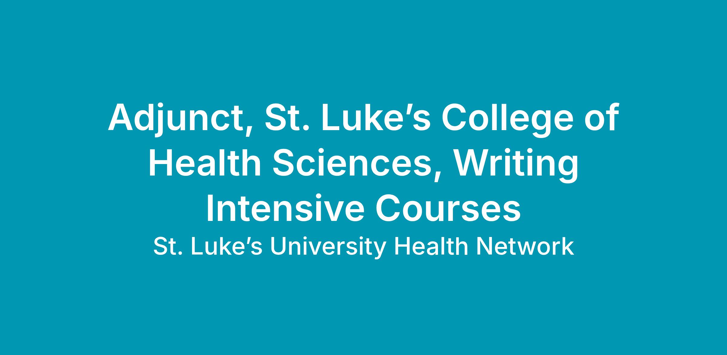 Adjunct, St. Luke’s College of Health Sciences, Writing Intensive Courses