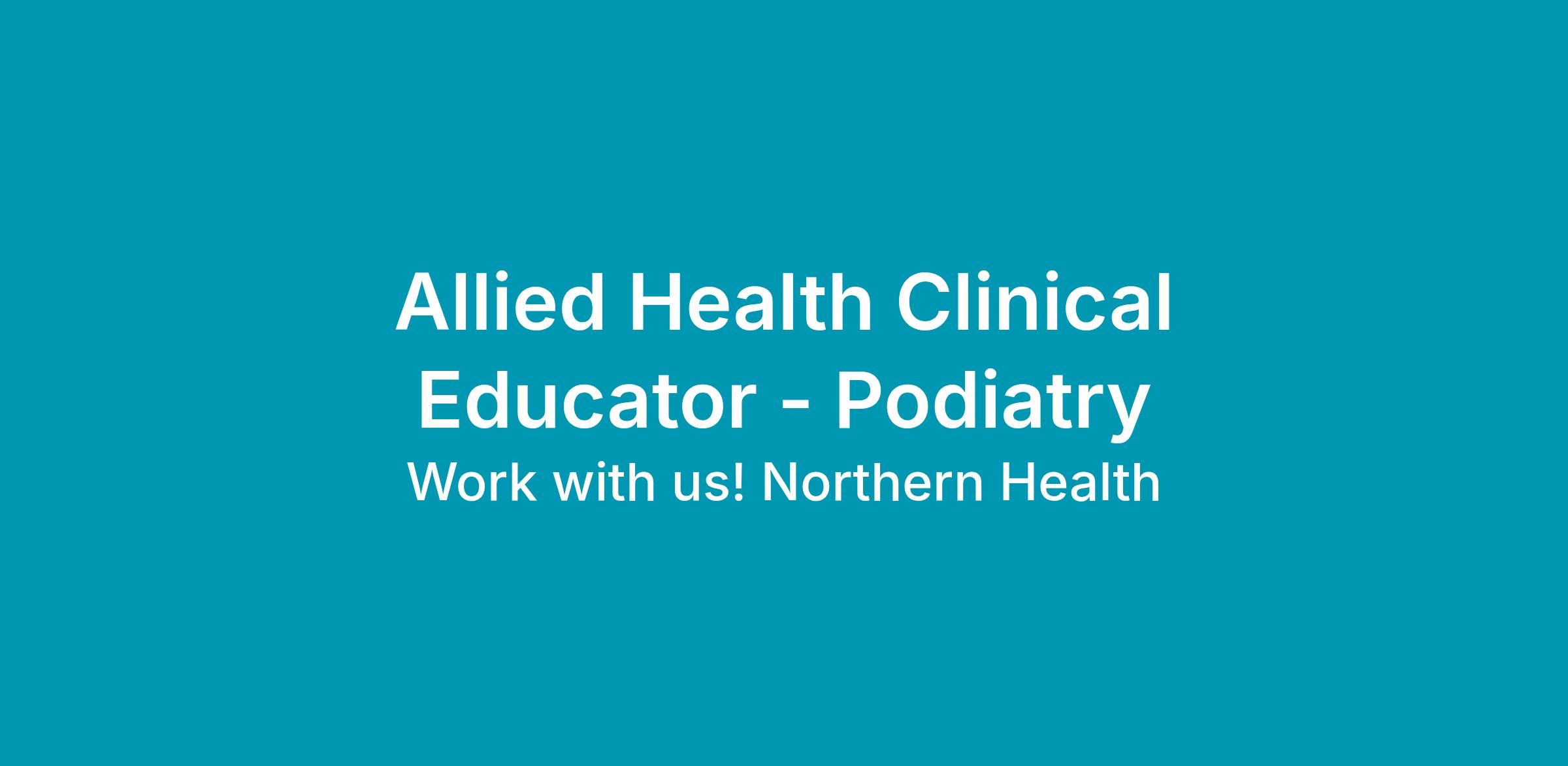 Northern Health are seeking applications from motivated and suitably experienced Podiatry Clinicians to join the Allied Health Education and Podiatry teams in the role of Clinical Educator.
