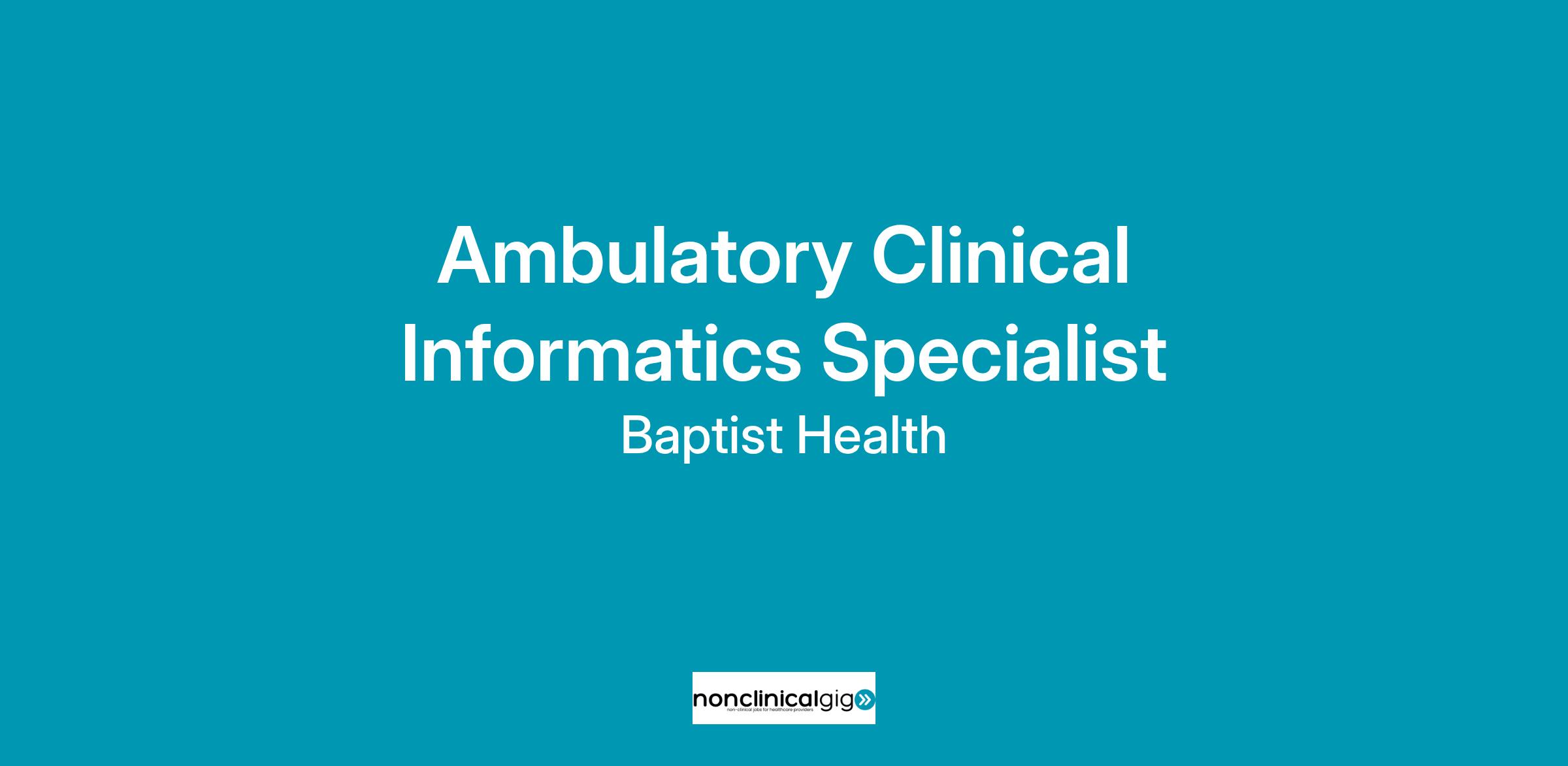 Summary: The Ambulatory Clinical Informatics Specialist is responsible to collaborate with ambulatory clinic staff, as well as IT to develop IT system efficacy. The Ambulatory CI Specialist will provide initial clinical application training to new staff, as well as continuing education/training and support. The CI specialist will work to resolve problems quickly and efficiently in collaboration with IT clinical analysts while utilizing the change management process. CI specialists will act as a resource and liaison at ambulatory staff meetings throughout the healthcare system. The Ambulatory CI Specialist will also assist IT with implementations and system upgrades of ambulatory clinical applications.