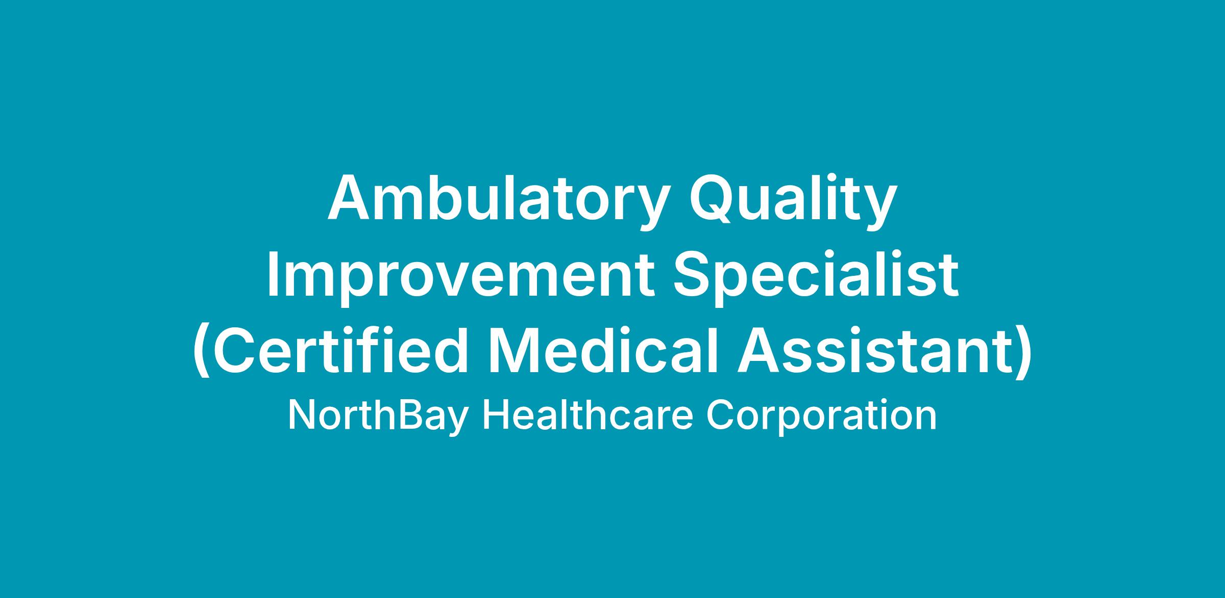 DescriptionAt NorthBay Health the Ambulatory Quality Improvement Specialist will perform quality functions in support of the ambulatory division. Accurately updates patient information in the electronic medical record related to physician assignment, deceased records, multiple missed appointments, and health plan disenrollment related to the daily operations of the practices. Reconciles and captures clinical quality documentation. Assists with health plan medical record review (MRR) surveys and compiles data for quality measure/health plan reporting. Assists with managing the data and clinical quality integrity of the medical record. Collaborates with the Manager to enhance quality measure provider and staff training, clinical performance, and process improvement efforts.