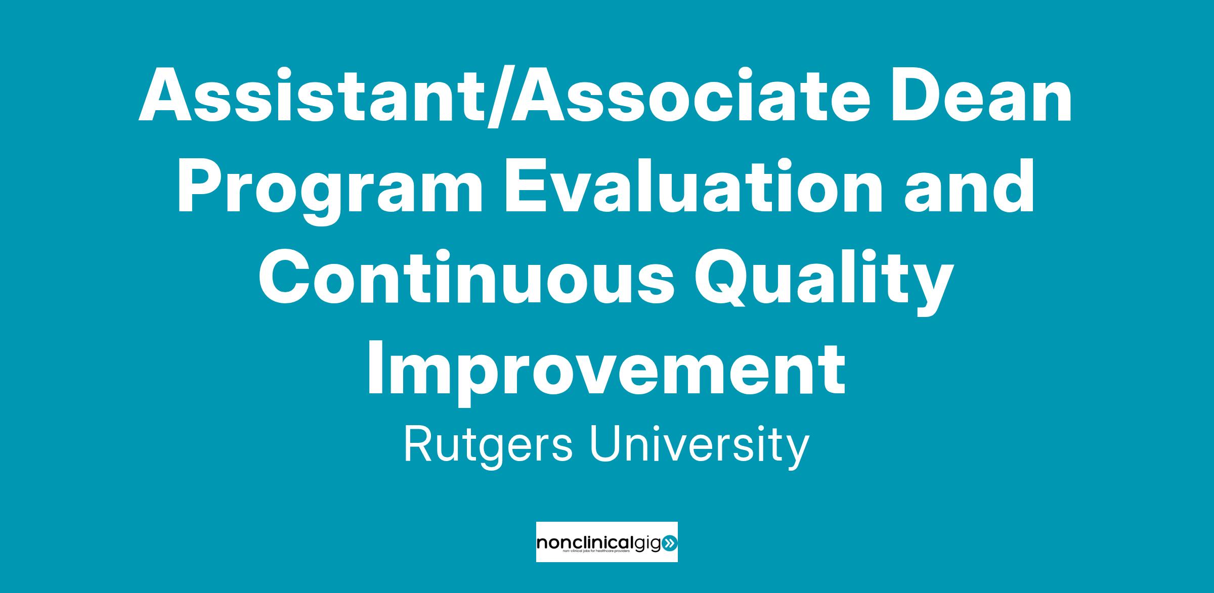 This newly developed role will report to the Executive Vice Dean and will provide services across the medical education continuum including faculty affairs. The Assistant/Associate Dean for Program Evaluation and Continuous Quality Improvement ( CQI ) will oversee the program development, data collection and analysis to inform and support the improvement of our educational programs along the educational continuum including our faculty and resident development programs. In addition, this role will work closely with other units and individual faculty to promote the scholarship of education across New Jersey Medical School. The successful candidate will be appointed at a faculty rank commensurate with experience and consistent with RBHS guidelines for appointments and promotions. Specific responsibilities include: Oversee all aspects of evaluation of the medical education program, including planning, data collection, compilation/ analysis and interpretation as well as activities related to preparation and dissemination of program evaluation data reports. Lead efforts to optimize the survey and assessment systems for evaluation of 1) individual curricular elements and 2) the overall educational programs, for continuous quality improvement of the curriculum and to monitor the impact of curricular changes. Collaborate with members of the leadership team to support the development of a comprehensive learner assessment system that will allow for evaluation of learner outcomes along the full extent of the MD-degree program curriculum. Direct the continuous monitoring process for compliance with all twelve LCME accreditation standards; serve as a core member of the LCME preparation team. Lead efforts with appropriate individuals/groups to develop and implement plans that address any identified areas of potential non-compliance with LCME accreditation standards. Serve as a member of the professional development team, working to promote and expand medical education scholarship. As appropriate, apply for and work with other units to apply for grants to support educational scholarship, present work nationally, and publish scholarship that advances education. Actively participate in curriculum, student affairs, admissions, and faculty meetings as needed and requested by the Executive Vice Dean.