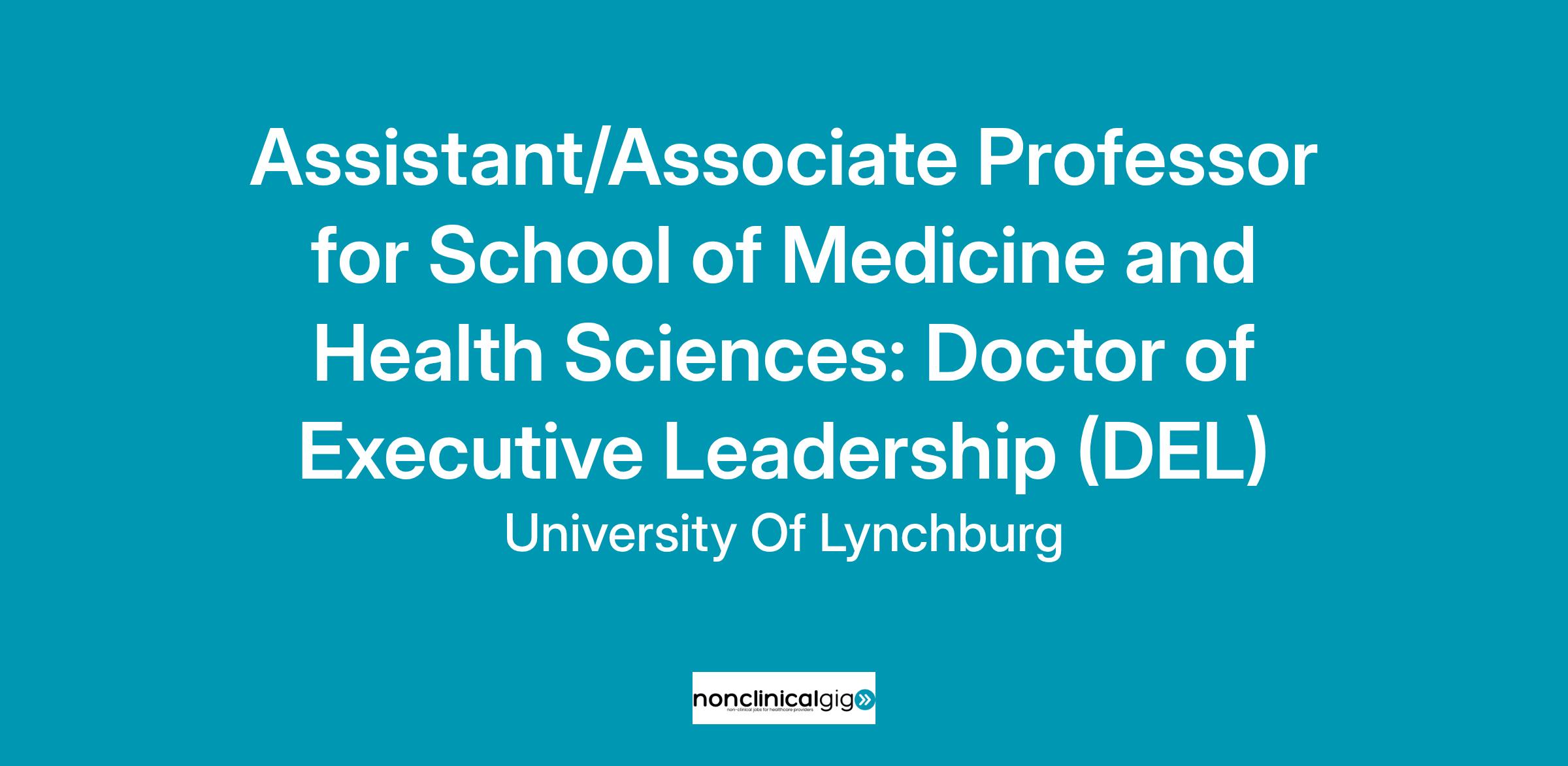 University of Lynchburg, Lynchburg, Virginia. The School of Medicine and Health Sciences invites applications for a full-time (12 month) assistant/associate professor, nontenure track position. This position will work directly with the DEL leadership team for the innovative and visionary doctorate education. The candidate selected for this position will engage in teaching, scholarship, and service activities consistent with the requirements of the School of Medicine and Health Sciences, collaborate with local community agencies and healthcare providers, and actively pursue involvement in professional organizations at the regional, state, national, and international levels.