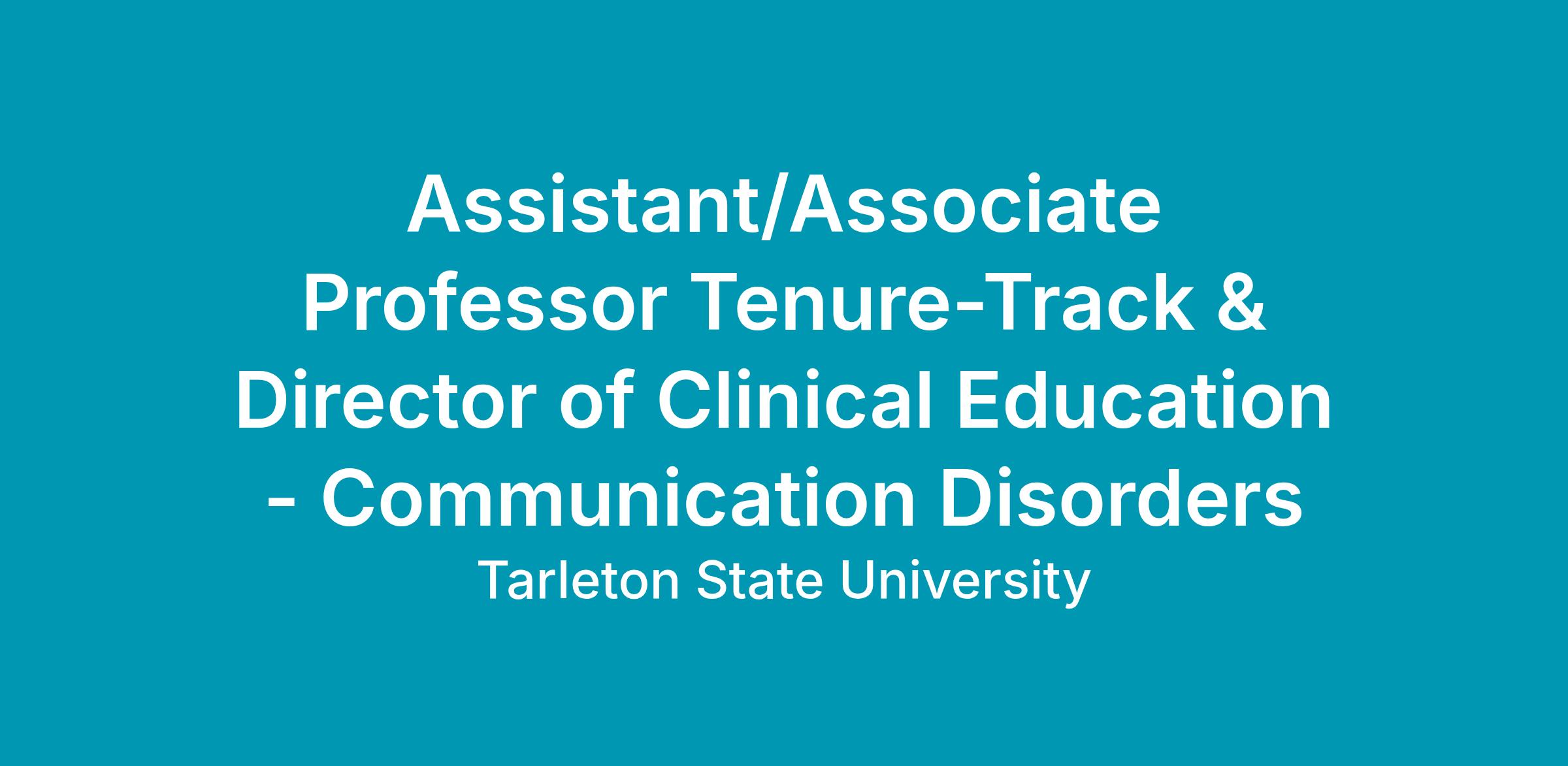 Assistant/Associate Professor Tenure-Track & Director of Clinical Education - Communication DisordersAgency