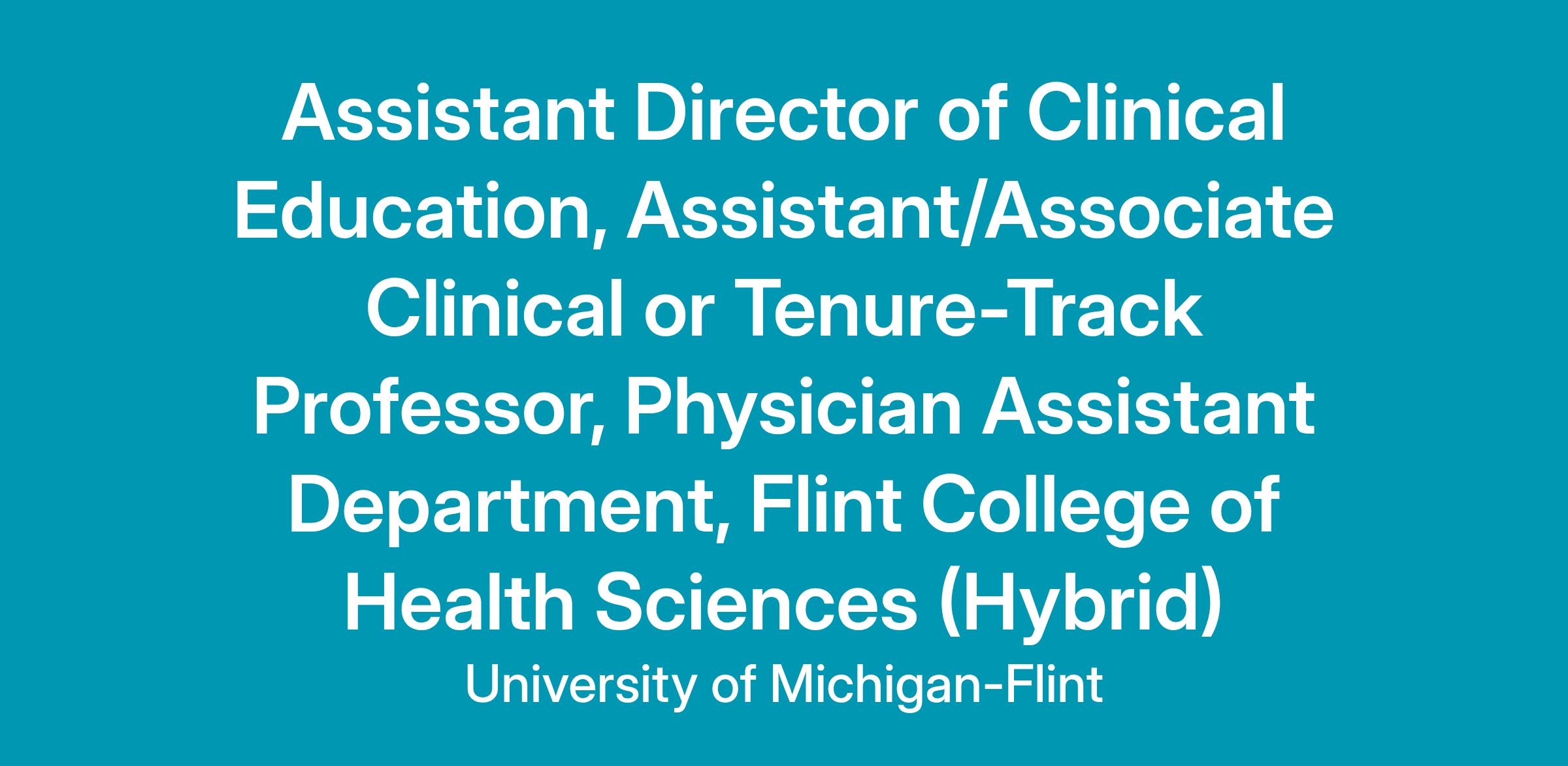 - For Clinical-Track Assistant/Associate Professor: a Master's degree in Physician Assistant or a relevant discipline