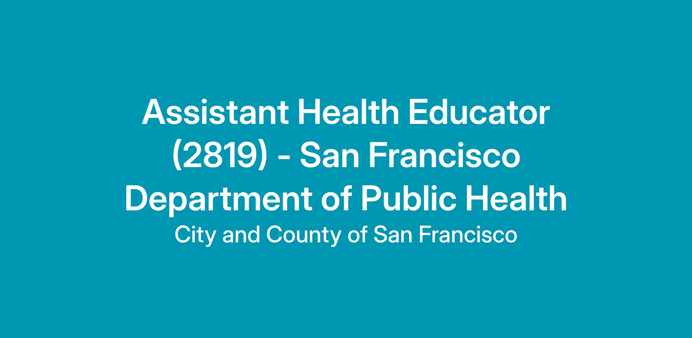Substitution: Professional health educator work experience performing duties equivalent to those of City and County of San Francisco Class 2819 Assistant Health Educator may be substituted for the required degree on a year-for-year basis (up to a maximum of 2 years). Thirty (30) semester units or forty-five (45) quarter units equal one year.