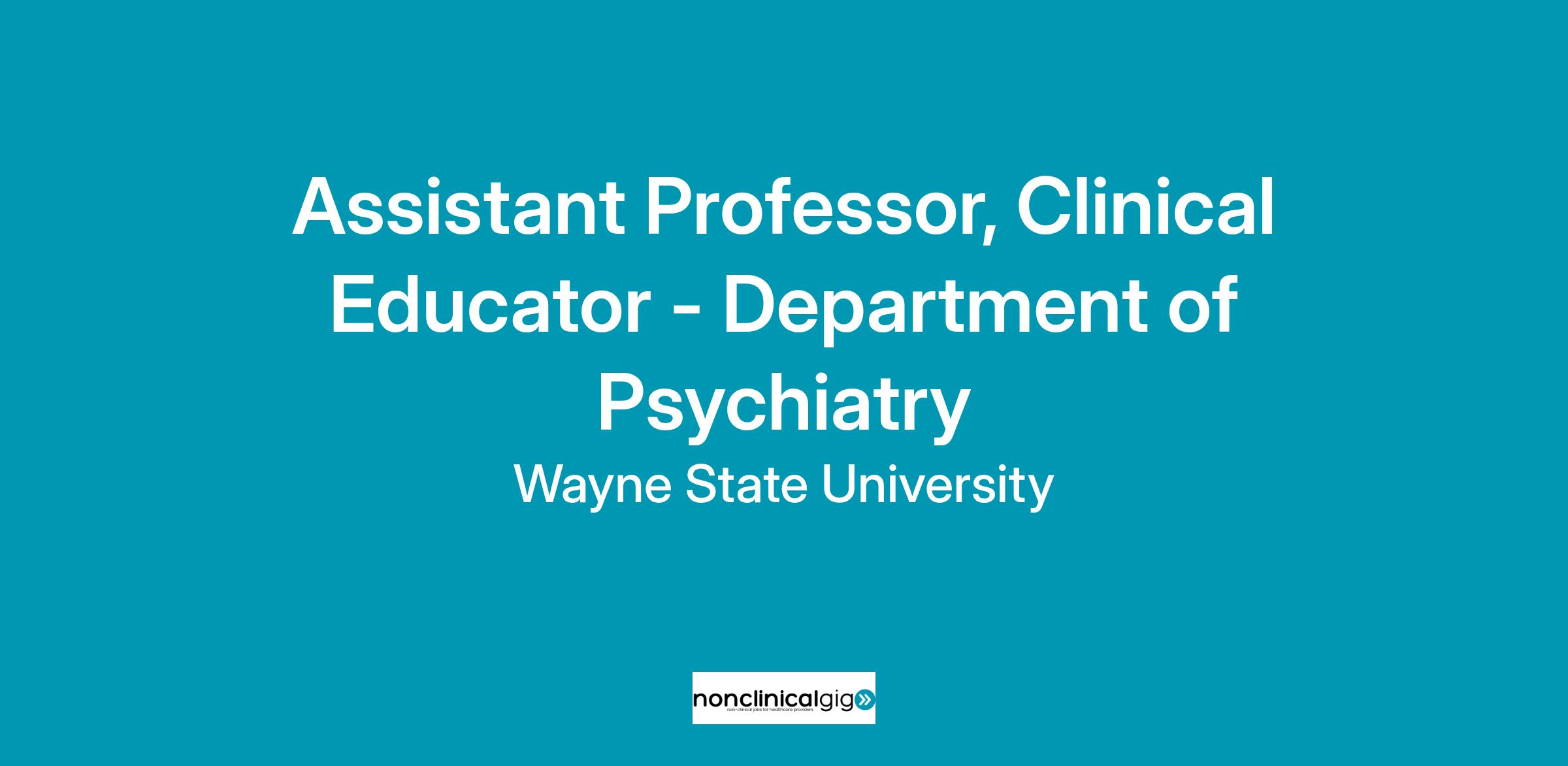 Wayne State University is searching for an experienced Assistant Professor, Clinical Educator - Department of Psychiatry at its Detroit campus location.