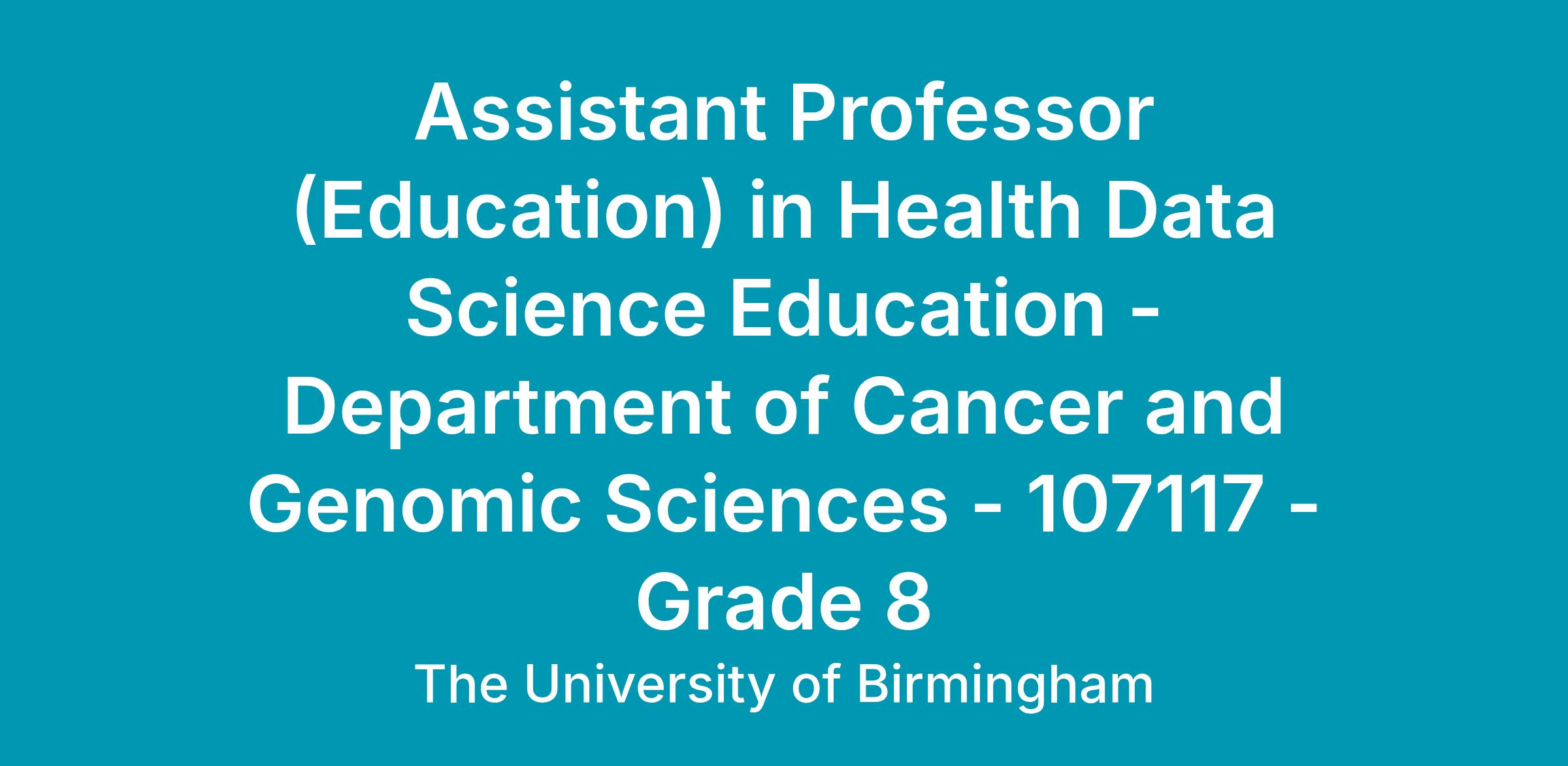 Assistant Professor (Education) in Health Data Science Education 107113
