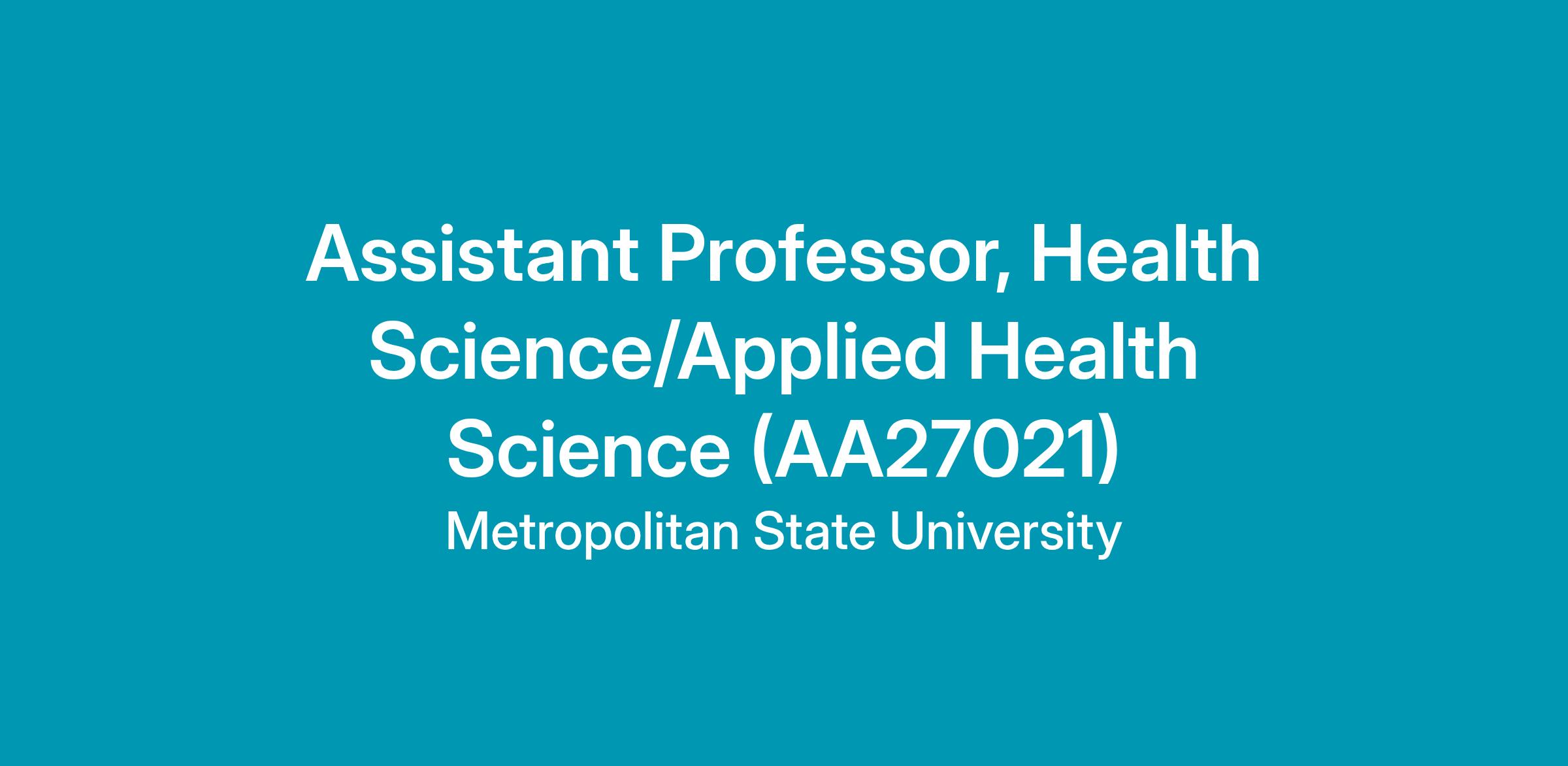 Assistant Professor, Health Science/Applied Health Science (AA27021)Institution: