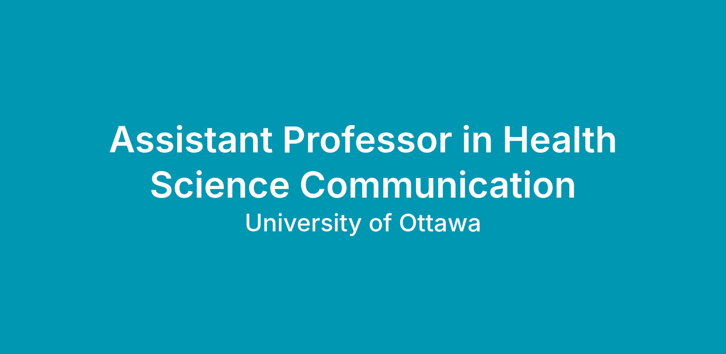 As part of a major expansion of its research programs in Health Science Communications, the Faculty of Health Sciences at the University of Ottawa invites applications for a tenure-track position specializing in the emerging intersection of Explainable AI (XAI), Generative AI for Personalized Health Messaging, and Multimodal AI Health Communication.