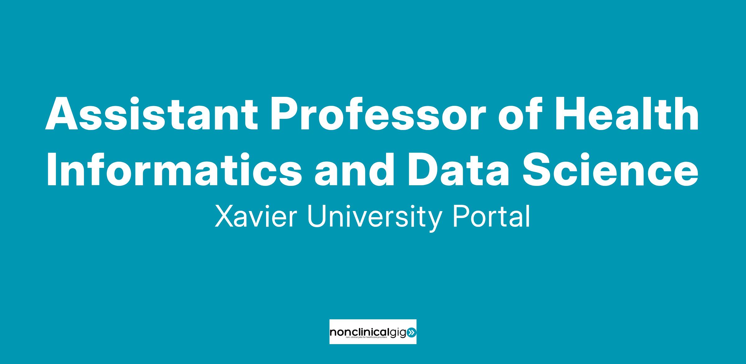 Ph.D. in Health Informatics or related field (conferred by the time of appointment); Experience in Health Informatics or Health Information Management; Experience in machine learning, database management systems, cloud computing, predictive analytics, data visualization as it relates to health data; Experience in Health Information security; Strong commitment to teaching nine semester hours per semester; Teach face-to-face as well as online classes; Teaching experience with demonstrated innovative approaches; Experience in research design and research methods with a demonstrated ability to publish research findings; Evidence of cultural competence and demonstrated success working with diverse populations is required; Demonstrated ability and willingness to work collegially; and a Commitment to the mission of Xavier University of Louisiana