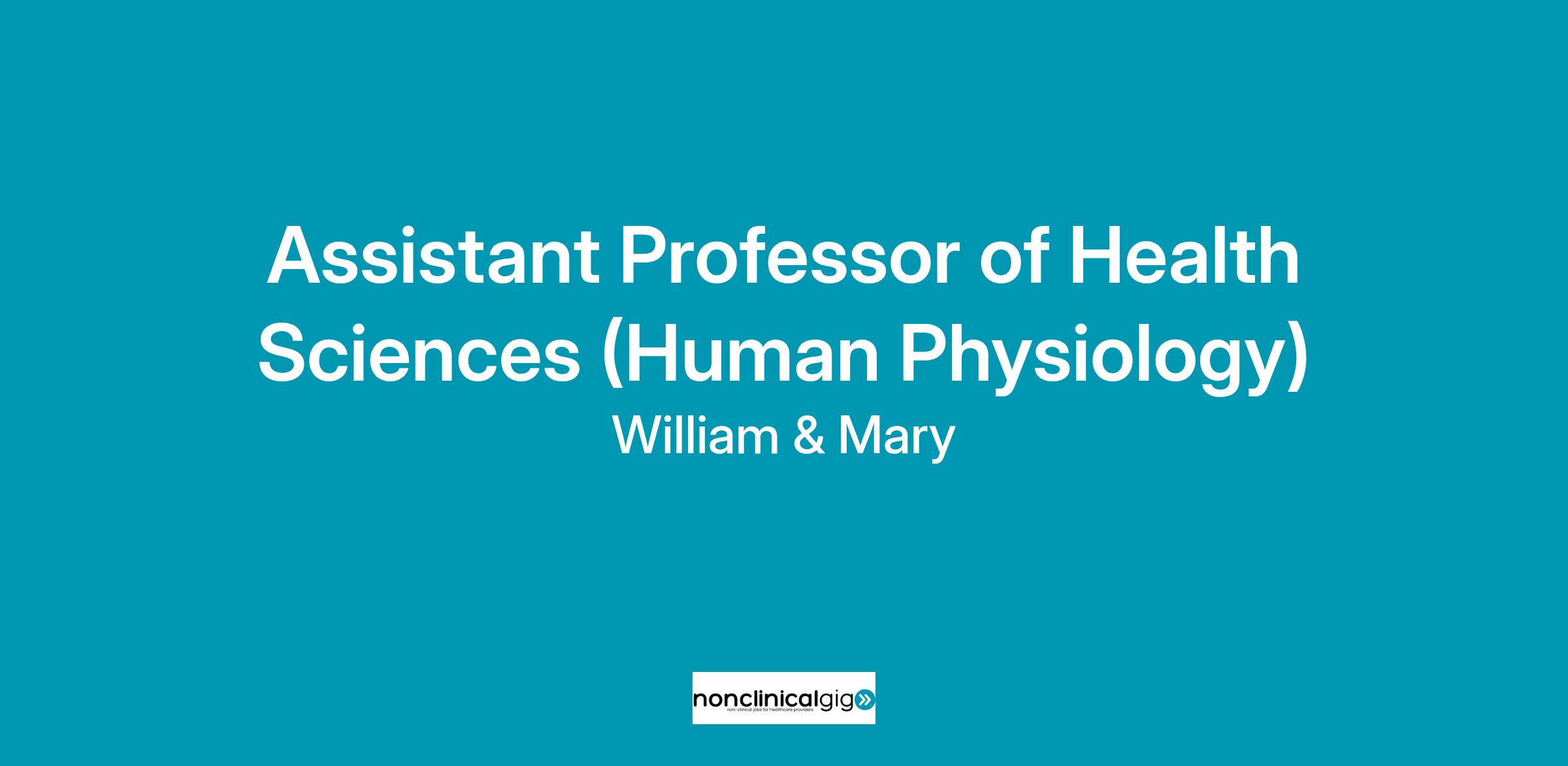 The Department of Health Sciences at William & Mary, a public university of the Commonwealth of Virginia, seeks applications for a tenure track position at the Assistant Professor level in human physiology. Appointment will begin August 10, 2026.Job Description: