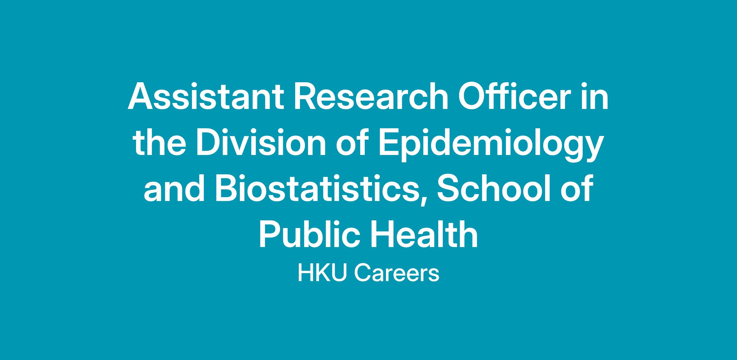 Applications are invited for appointment as Assistant Research Officer in the Division of Epidemiology and Biostatistics, School of Public Health (Ref: 533864), to commence as soon as possible for two years on fixed terms, with the possibility of renewal subject to satisfactory performance.