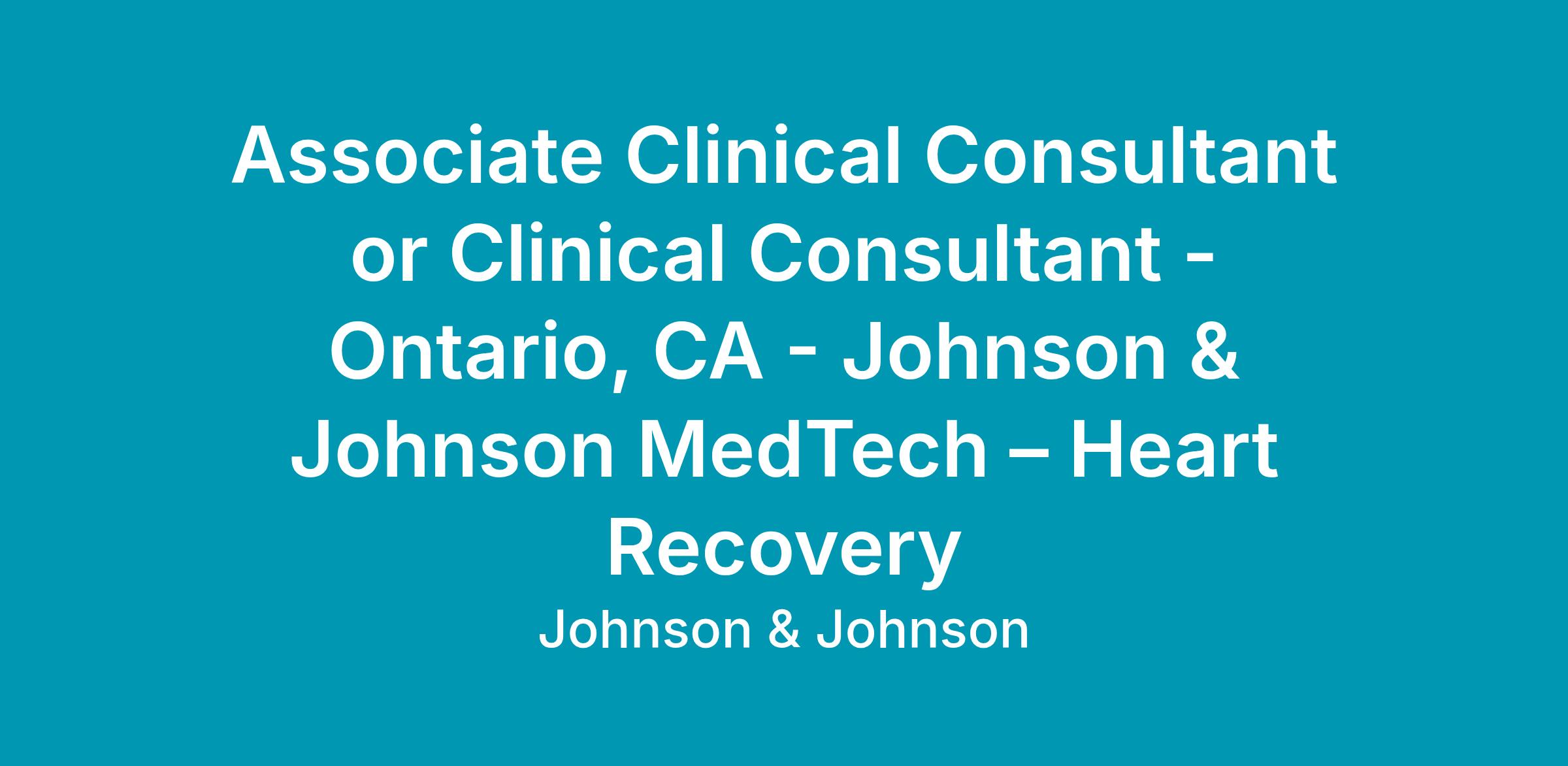We are searching for the best talent for an Associate Clinical Consultant or Clinical Consultant to support clients and patients in Ontario, CA area.
