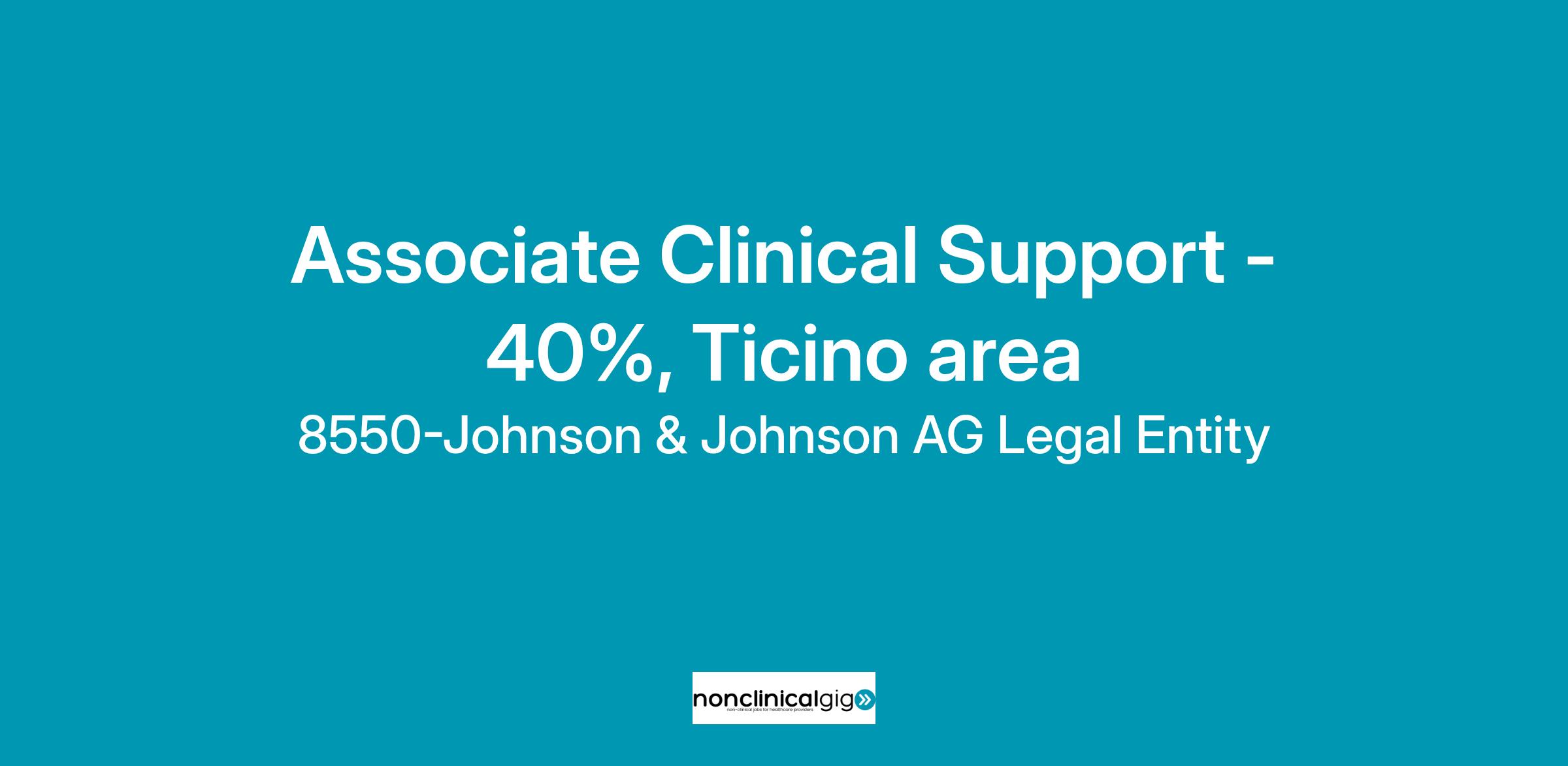 At Johnson&Johnson MedTech, we are recruiting an Associate clinical support responsible for Ticino area. “Caring for the world, one person at a time” inspires and unites the people of Johnson & Johnson. We adopt a strong focus on research and science applied tools - bringing innovative ideas, products and services to advance the health and well-being of people.