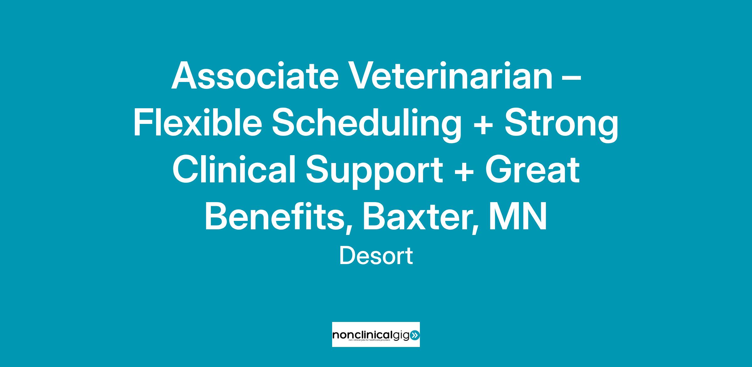 A well-supported small-animal practice in Baxter. MN is seeking an Associate Veterinarian o join a collaborative medical team. This role is ideal for a doctor who values flexibility, a strong professional support system, and opportunities to expand clinical skills across a range of cases. The environment encourages learning, teamwork, and long-term professional development while maintaining a steady, well-balanced workflow.