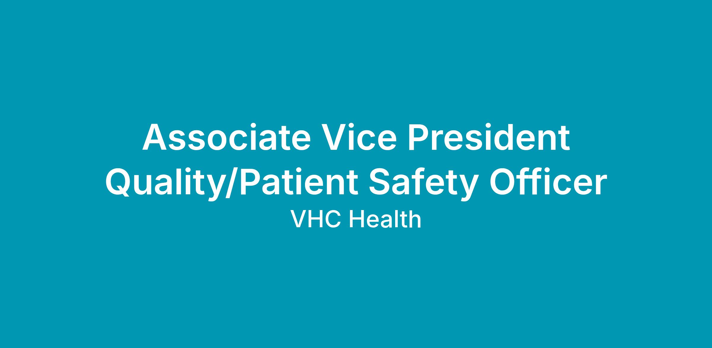 The Associate Vice President (AVP), Quality & Patient Safety serves as the organization’s Patient Safety Officer (PSO) and is responsible for leading, coordinating, and advancing the hospital’s quality, safety, performance improvement, and regulatory readiness strategies within the hospital and associated VHC Medical Group Practices.