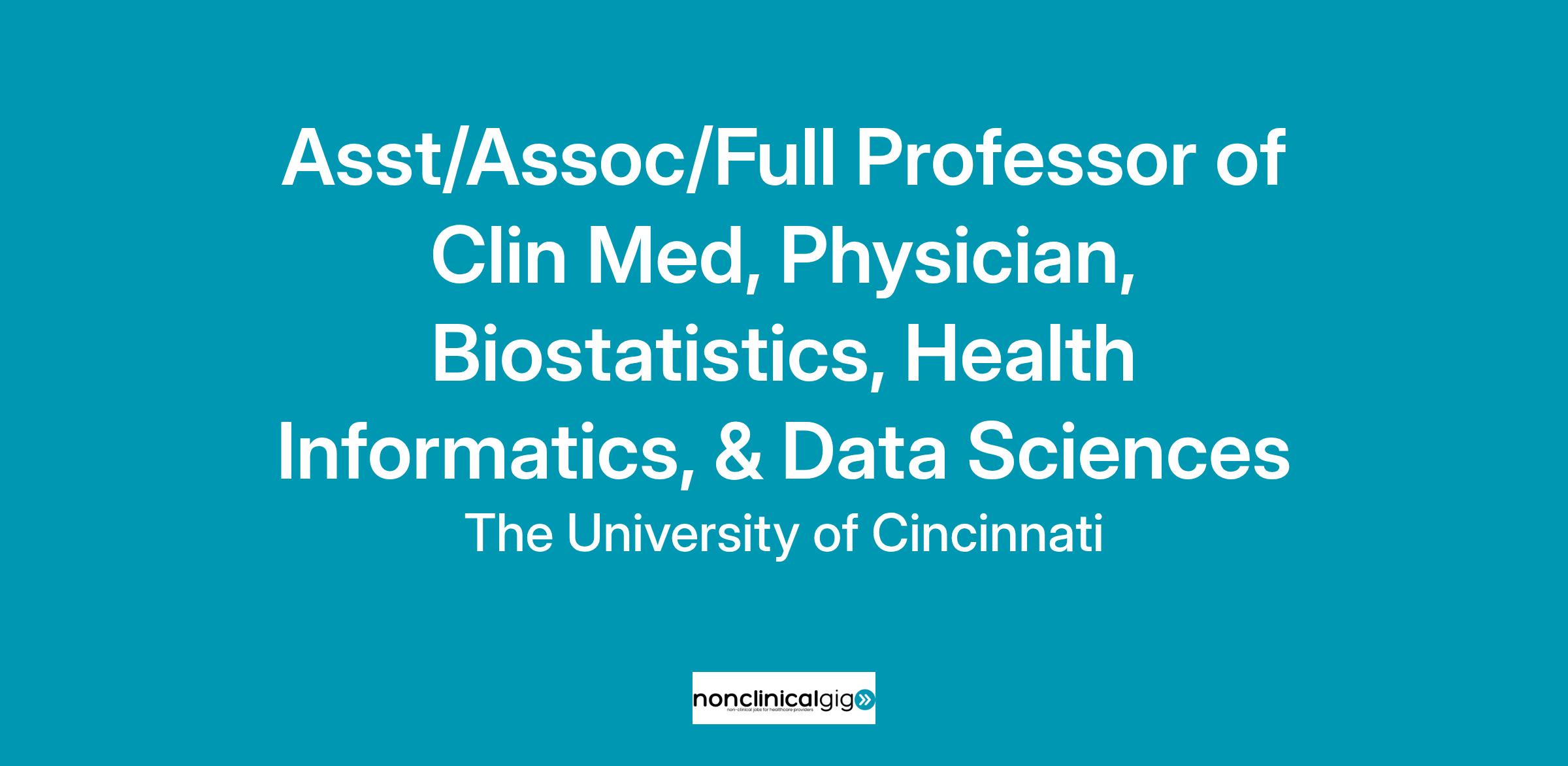 The fast-growing Department of Biostatistics, Health Informatics and Data Sciences is seeking a full-time physician, fellowship trained in Clinical Informatics, to improve system services, promote maximum efficiency of health information technologies and implement best practices to enhance the productivity of clinical systems. Collaborating with faculty across the health system, the successful candidate will apply their expertise to advance the departments’ strategy and research efforts through collaboration, leadership, and external funding. Rank is commensurate with experience.
