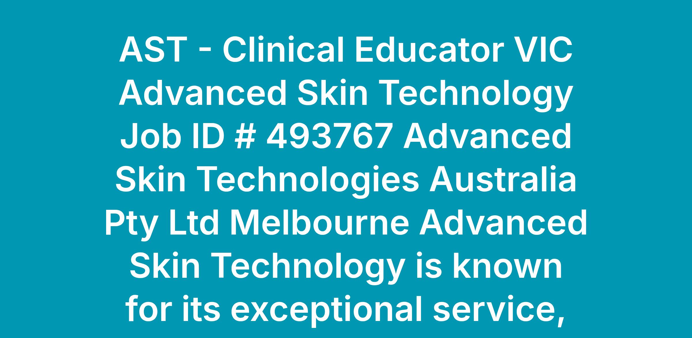 The Clinical Educator is responsible for delivering high-impact clinical education and training that drives excellent treatment outcomes, confident product usage, and sustainable business growth across AST clinic partners. The role blends hands-on technical training, onboarding of new accounts, territory planning, and collaboration with Sales and Marketing to elevate clinic capability, product adoption, and brand advocacy. A regular call cycle, VIP and evening events, and regional/interstate travel are core parts of the role.