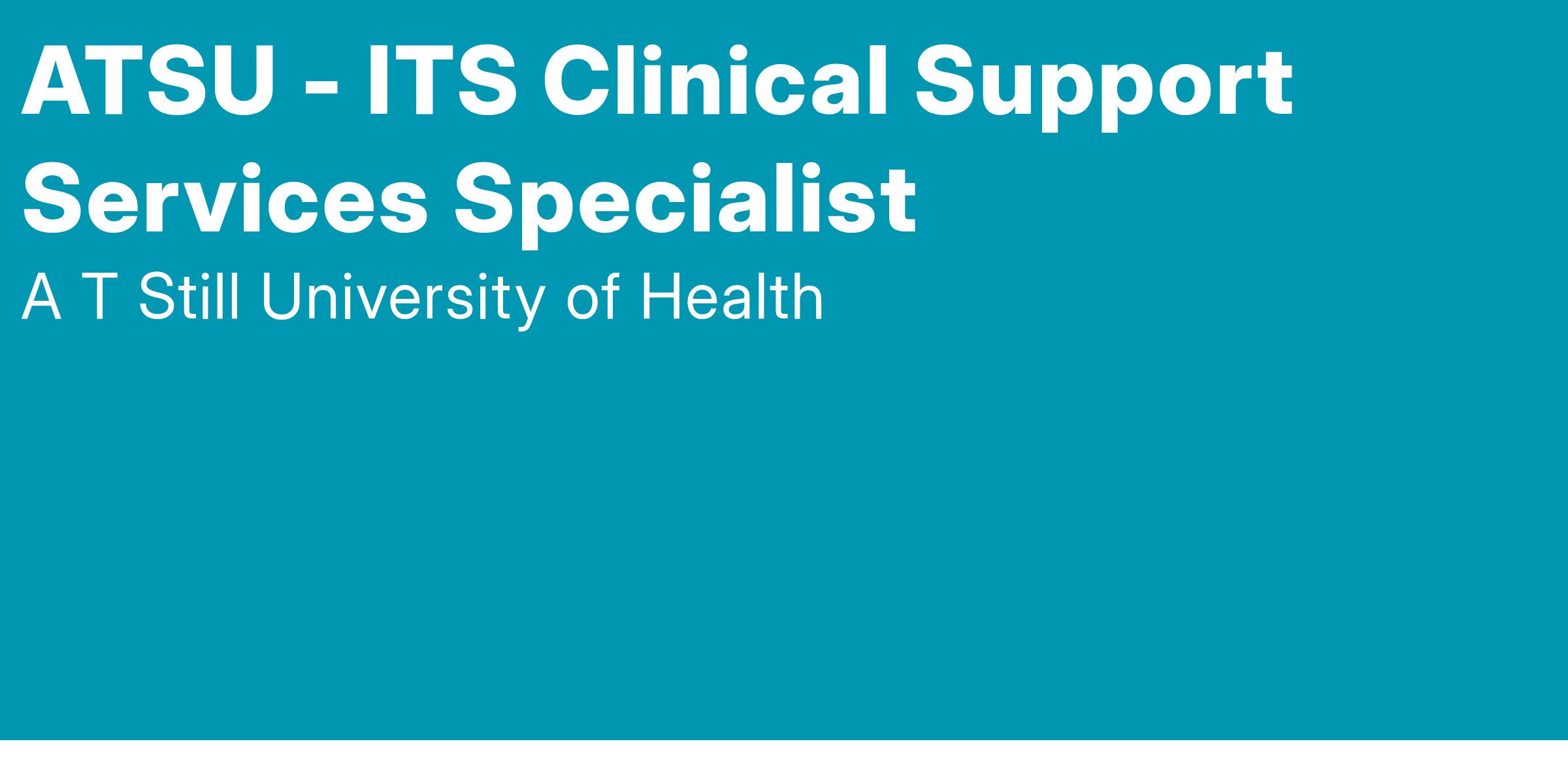 A. T. Still University is seeking a non-exempt, full time ITS Clinical Support Services Specialist on the St. Louis, Missouri Campus. This position reports to the IT Support Services Manager. This position is considered a second tier position and technology leader within Support Services. In addition to performing day-to-day technical work similar to a Support Services technician, staff in this position troubleshoot and resolve Level II issues. This position is the main technical contact for the St. Louis Dental Clinic. Staff in this position also have the responsibility of specializing in certain Level II activities such as account management, telephony, customer satisfaction, classroom A/V support, and desktop development and maintenance. Persons in this position may be assigned to assist with some duties of the Support Services Manager as needed.