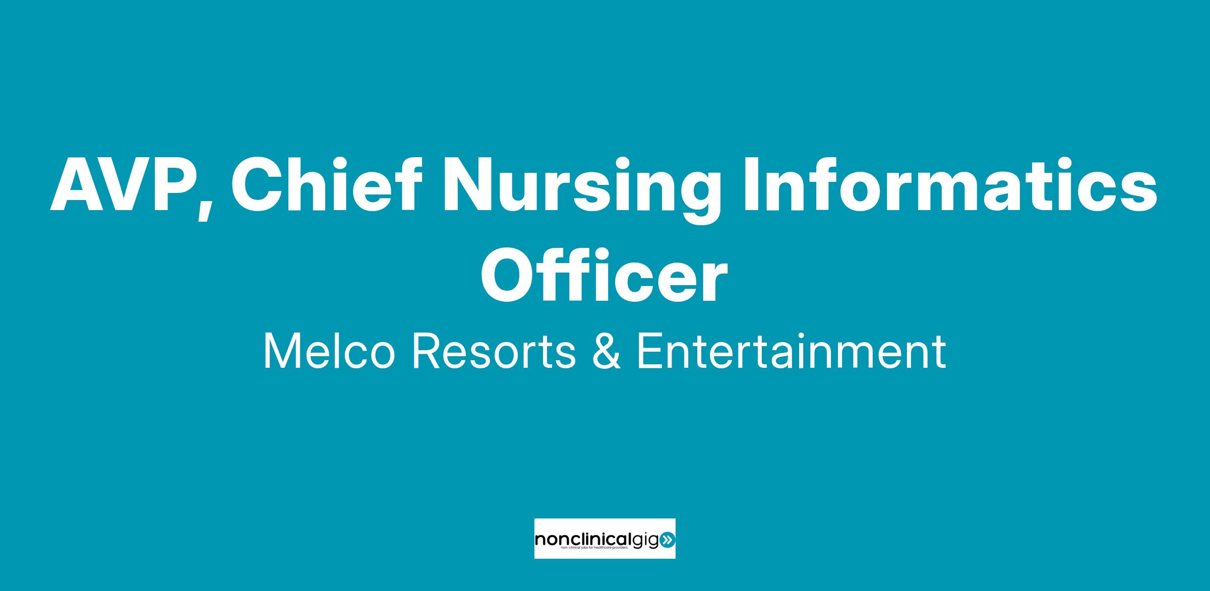 The AVP, Chief Nursing Informatics Officer is responsible for the execution of the informatics vision, and day-to-day management of the informatics workforce that support the nursing and non-physician priorities of the health system.Education: MSN or Master’s in Informatics as well as DNP or PhD in Nursing/Informatics preferred.