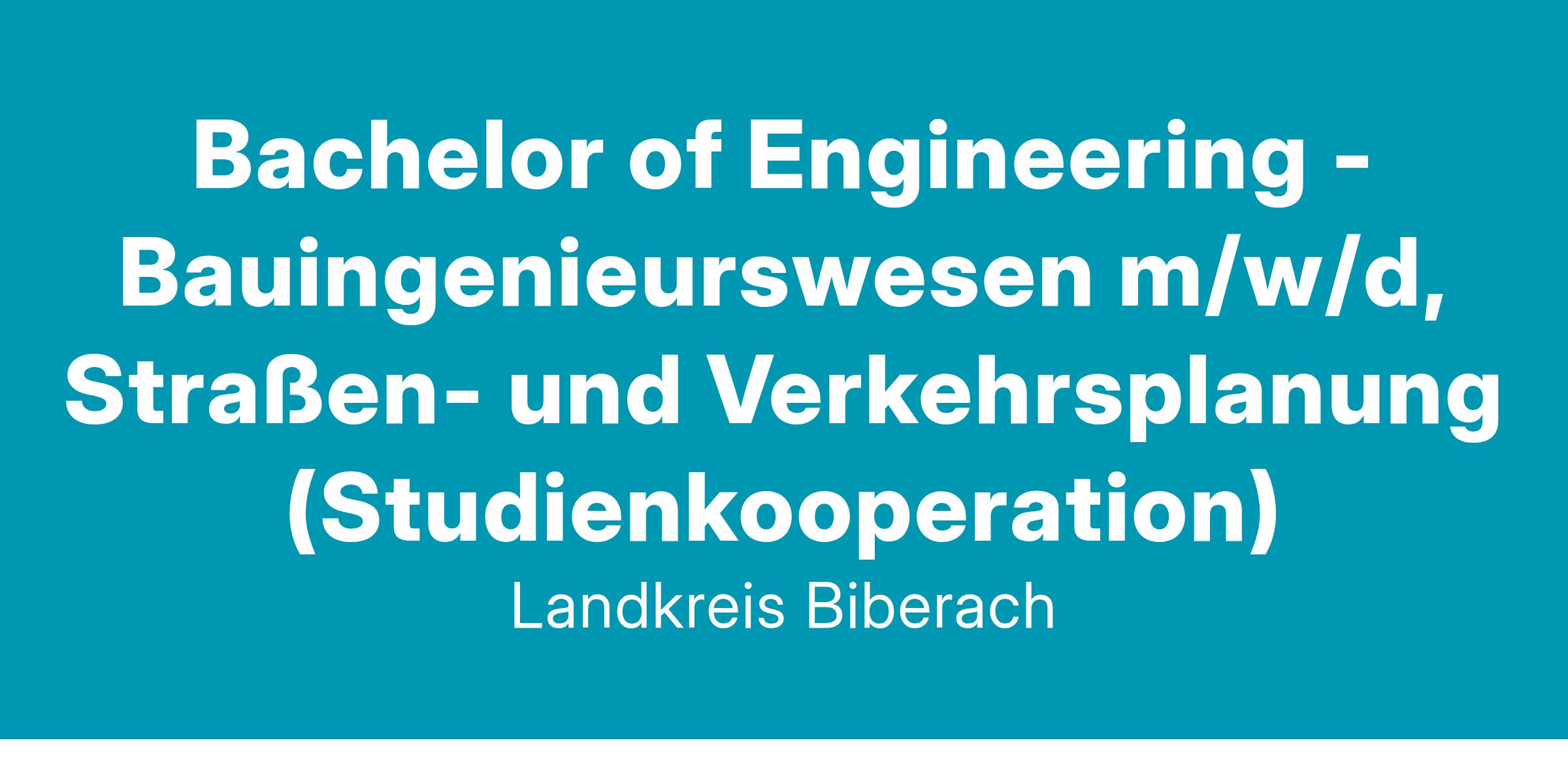• eigenständige Bewerbung zum Bachelorstudiengang Bauingenieurswesen, Straßen- und Verkehrsplanung an der Hochschule Biberach (nach der Studienplatzzusage erfolgt der Abschluss des Bildungsvertrags mit dem Landratsamt Biberach)