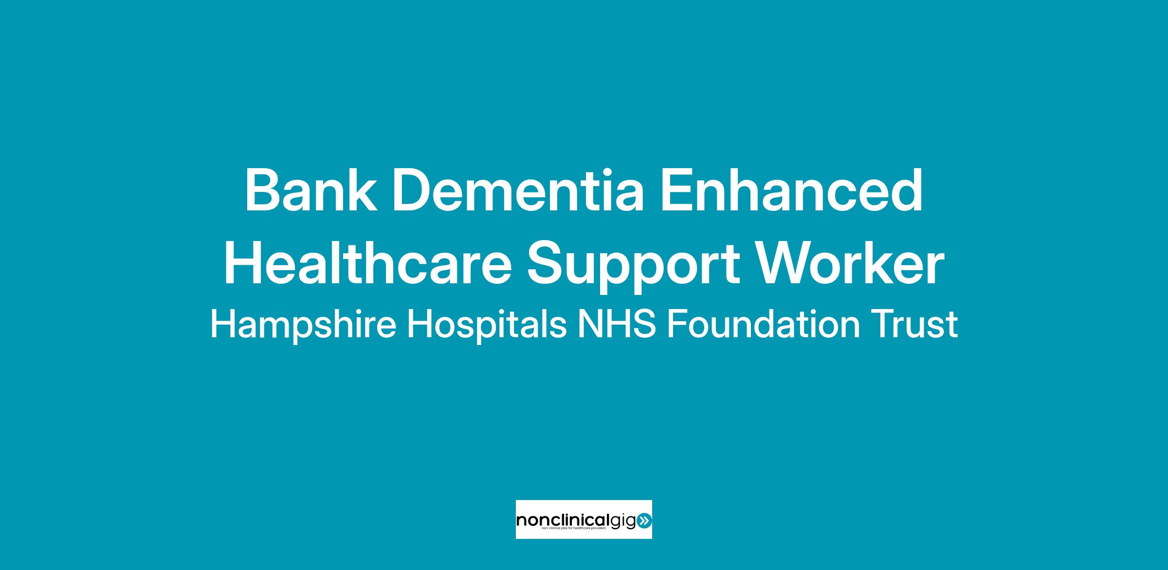 Hampshire Hospitals NHS Foundation Trust aims to ensure that all wards and departments are always adequately staffed, by providing a pool of experienced and passionate Bank Healthcare Support Workers to support our provision of optimal care, specifically for our Dementia Patients.