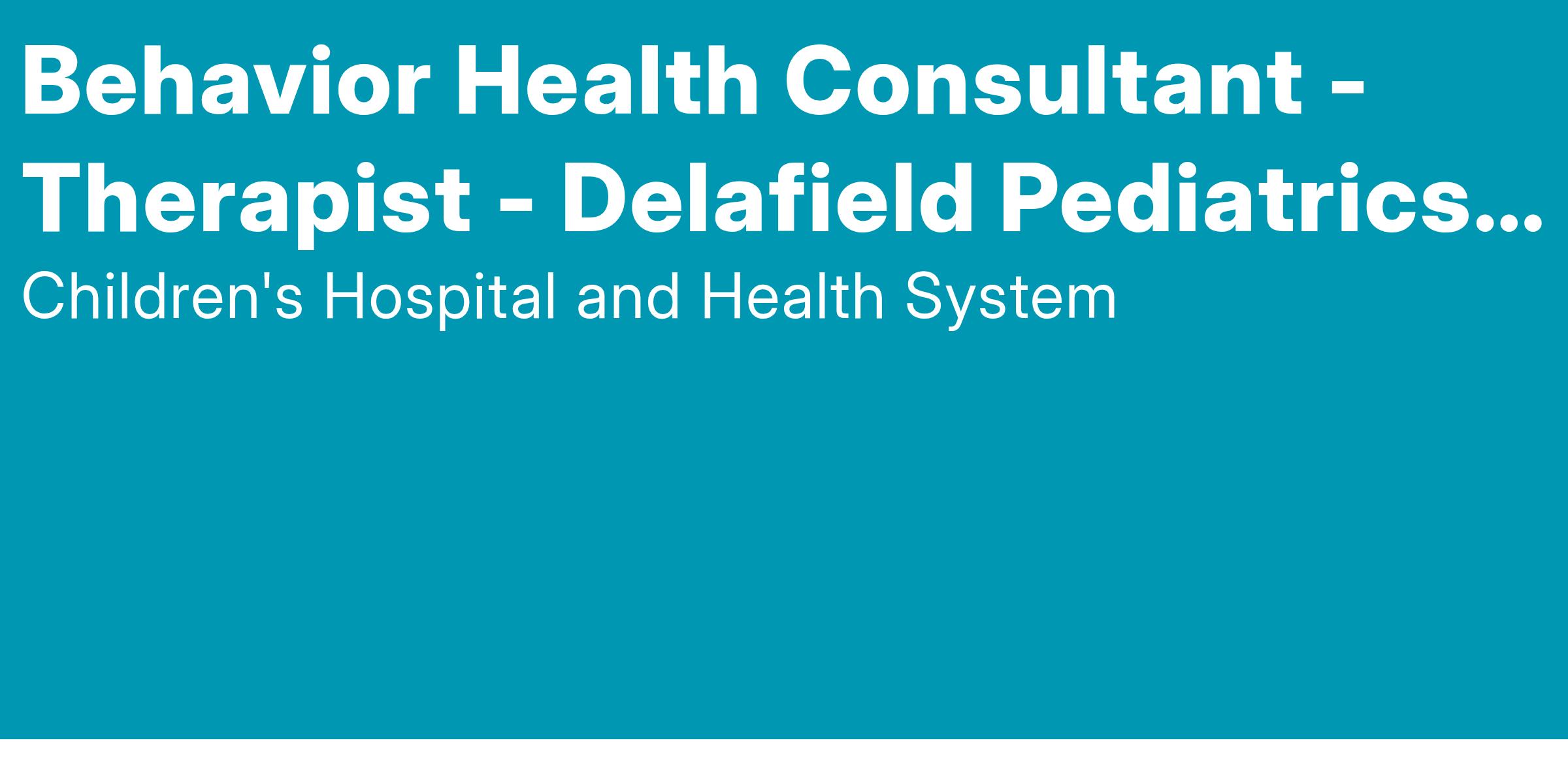 Behavior Health Consultant - Therapist - Delafield Pediatrics - Part Time