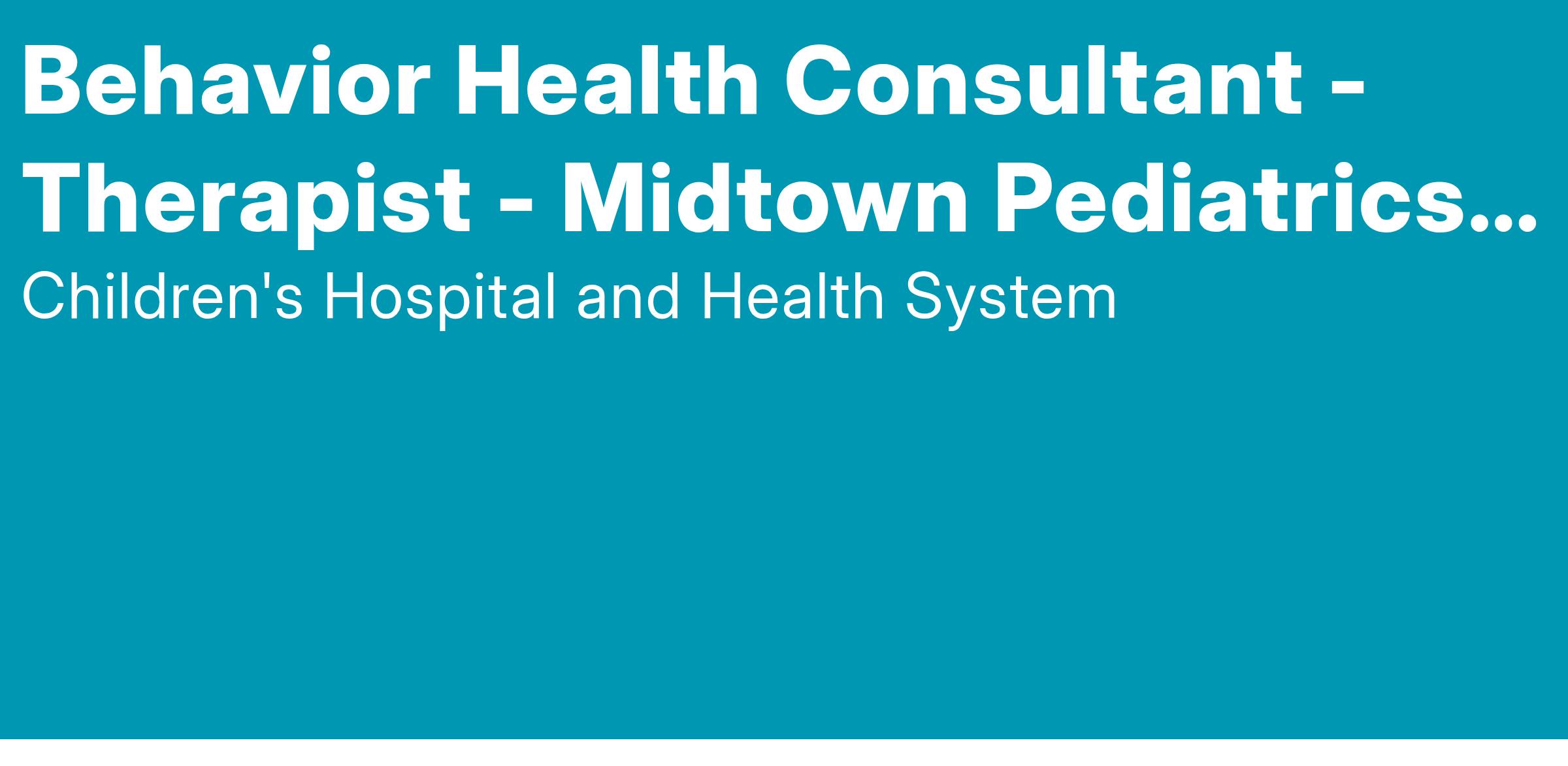 Behavior Health Consultant - Therapist - Midtown Pediatrics - Part Time