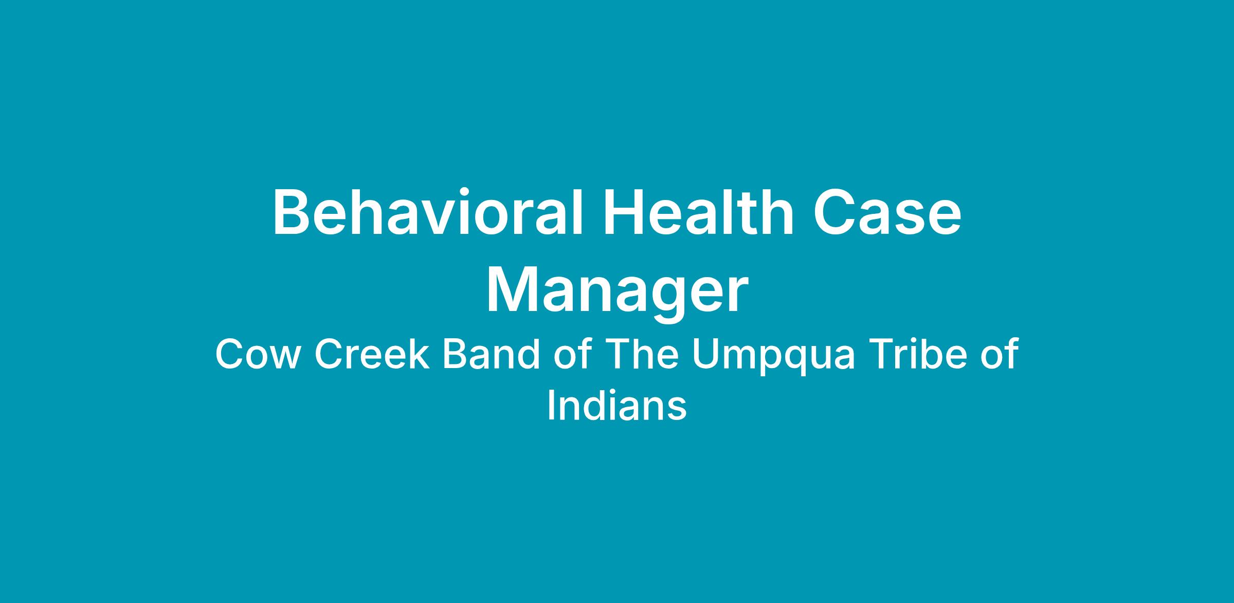 The Cow Creek Health & Wellness Center invites applications for the position of Behavioral Health Case Manager. This pivotal role offers a unique opportunity to enhance the well-being and support the mental health of our community members. The position is Full-Time and is based at our facilities, requiring on-site presence as it is not a remote job. The successful candidate will join a dedicated team committed to providing culturally responsive and holistic health services.