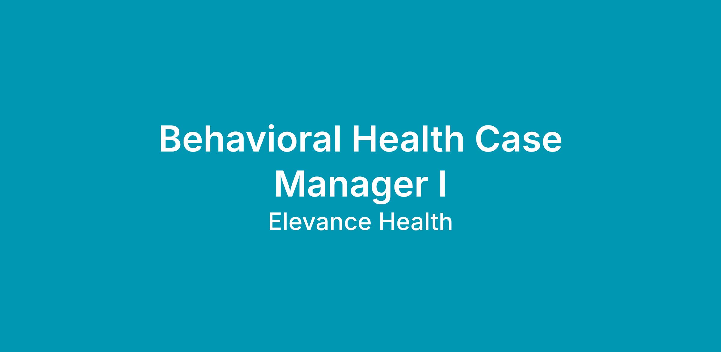 Behavioral Health Case Manager I