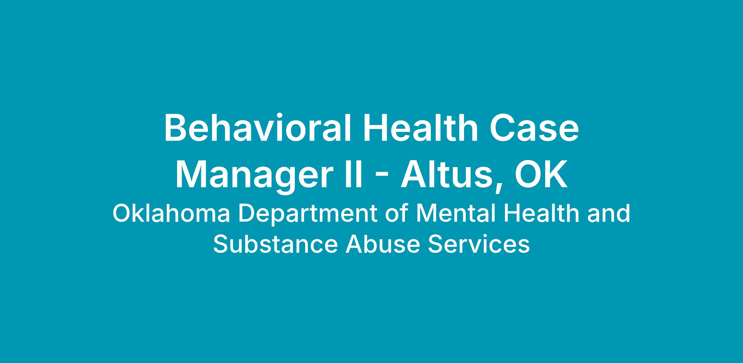 Behavioral Health Case Manager II: Requires a baccalaureate degree from an accredited program in a behavioral health field. Contingent to training availability, Department sponsored case management certification will be completed within 30 days of start date.