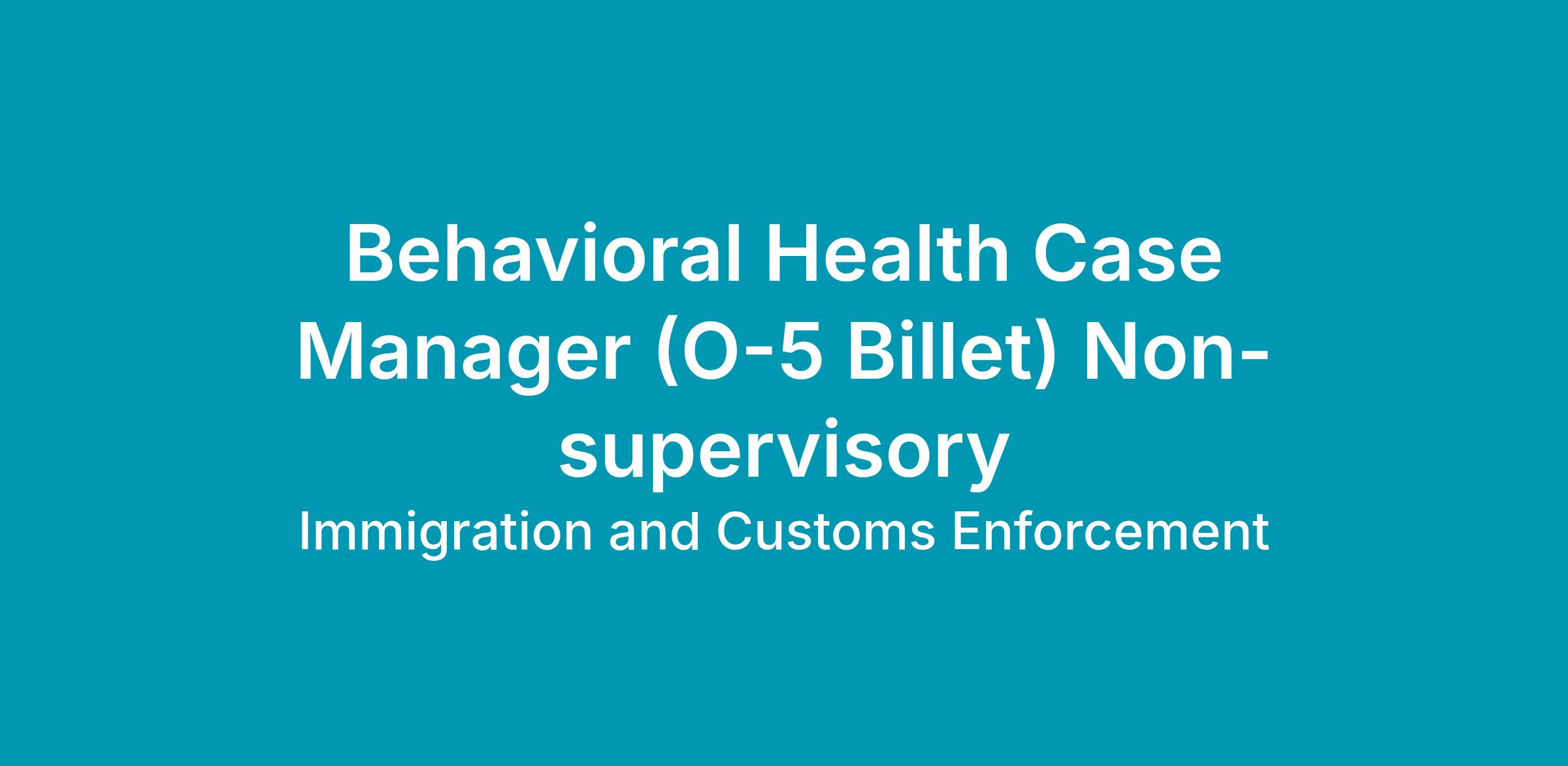 This position is within the Department of Homeland Security, Immigration and Customs Enforcement (ICE), Enforcement and Removal Operations, ICE Health Service Corps, Behavioral Health Unit. Reporting to the Regional Behavioral Health Consultant, the non-supervisory behavioral health case manager is responsible for coordinating and monitoring behavioral health services for individuals in ICE custody.