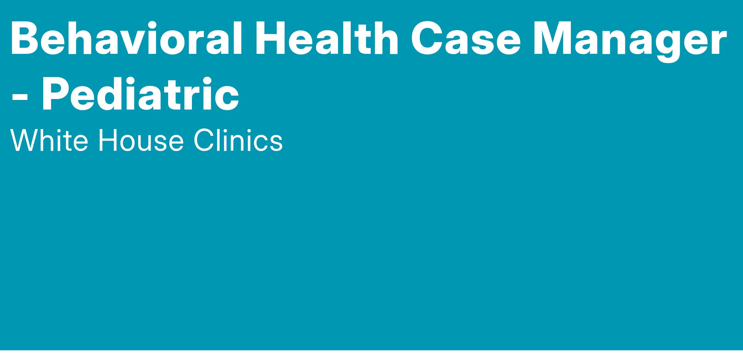 The Pediatric Behavioral Health Case Manager supports the care coordination needs of pediatric patients and families affected by mental health or substance use disorder. Works with patients and their families to develop and implement a person-centered care coordination plan, ensuring access to the supports and resources needed to improve mental health and health outcomes. Collaborates closely with other members of the WHC care team, as well as schools and other service organizations.